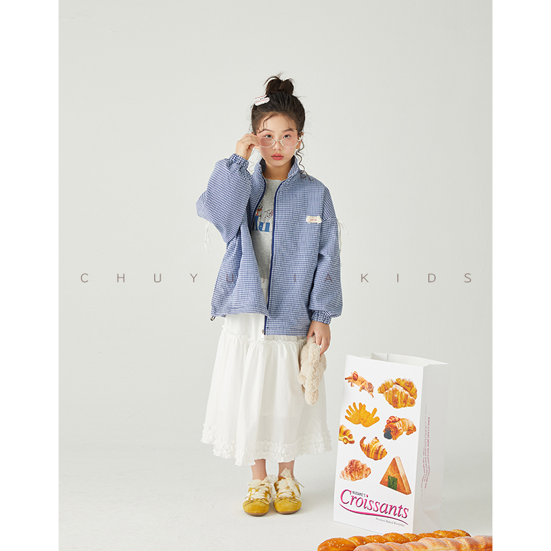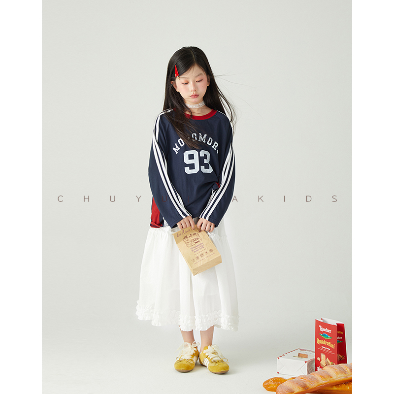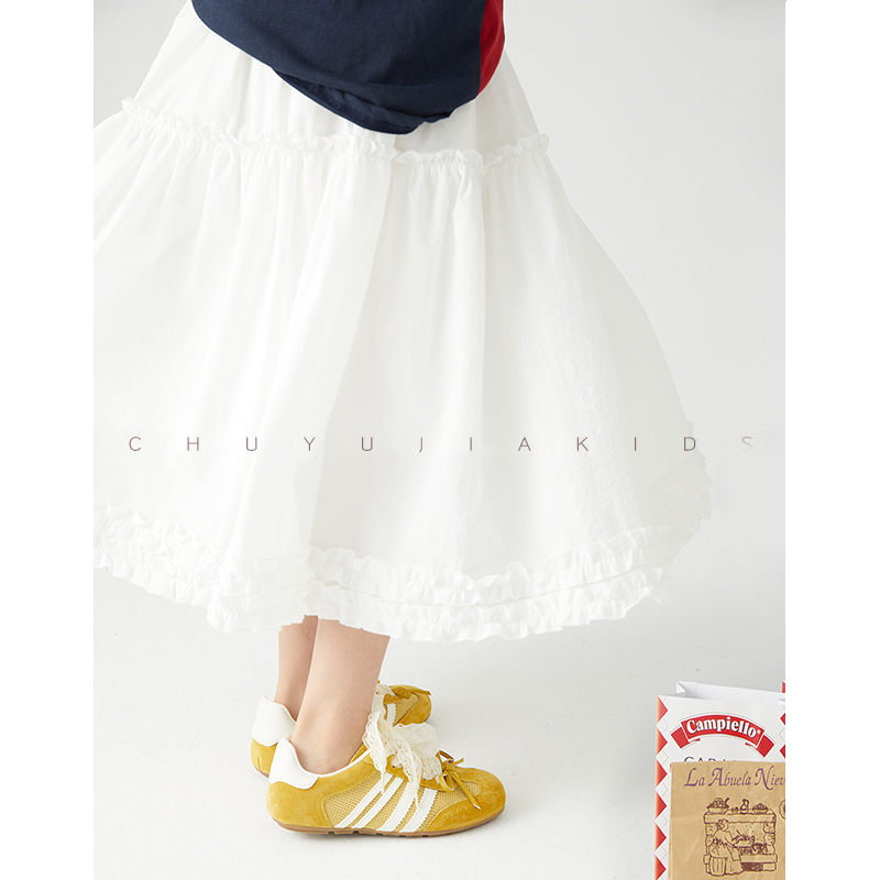 初羽家童装女童洋气裙子秋季2025新款儿童白色花边宽松短裙半身裙