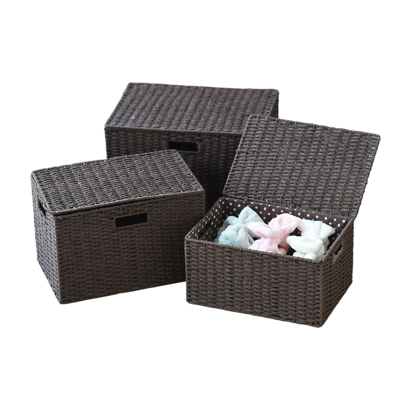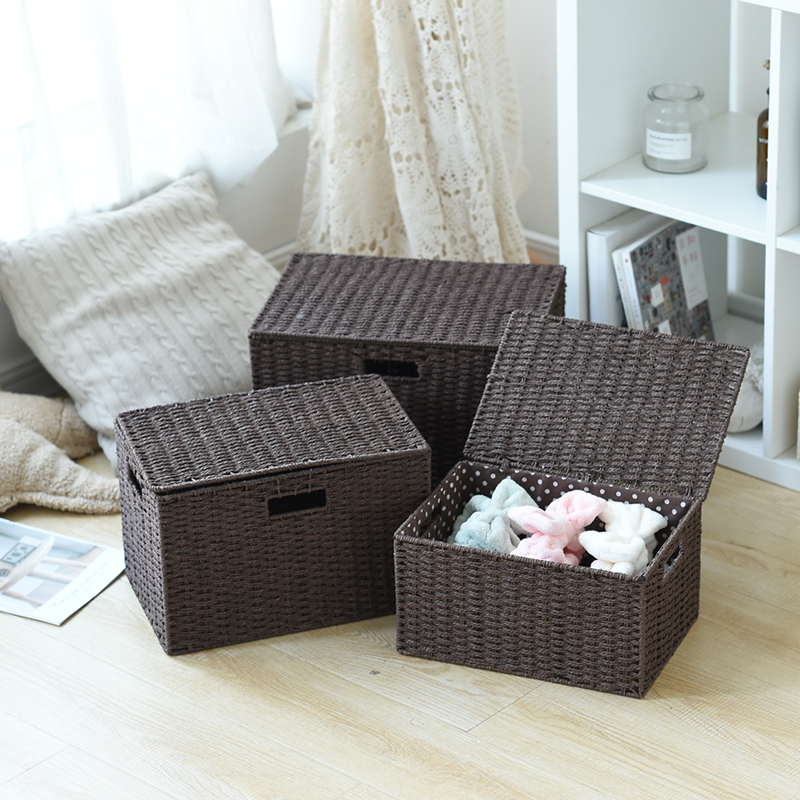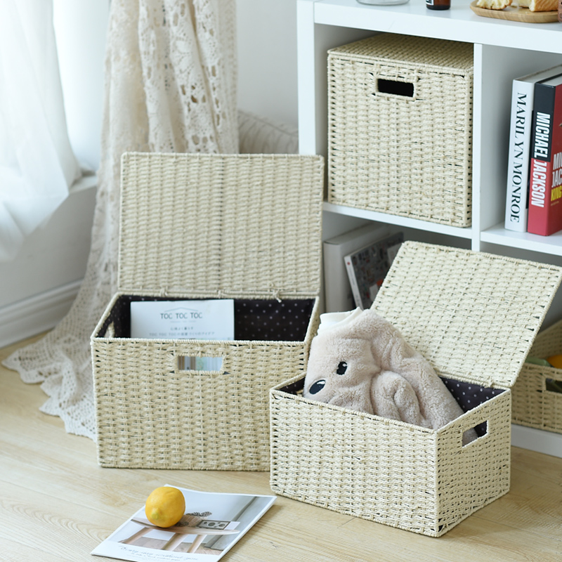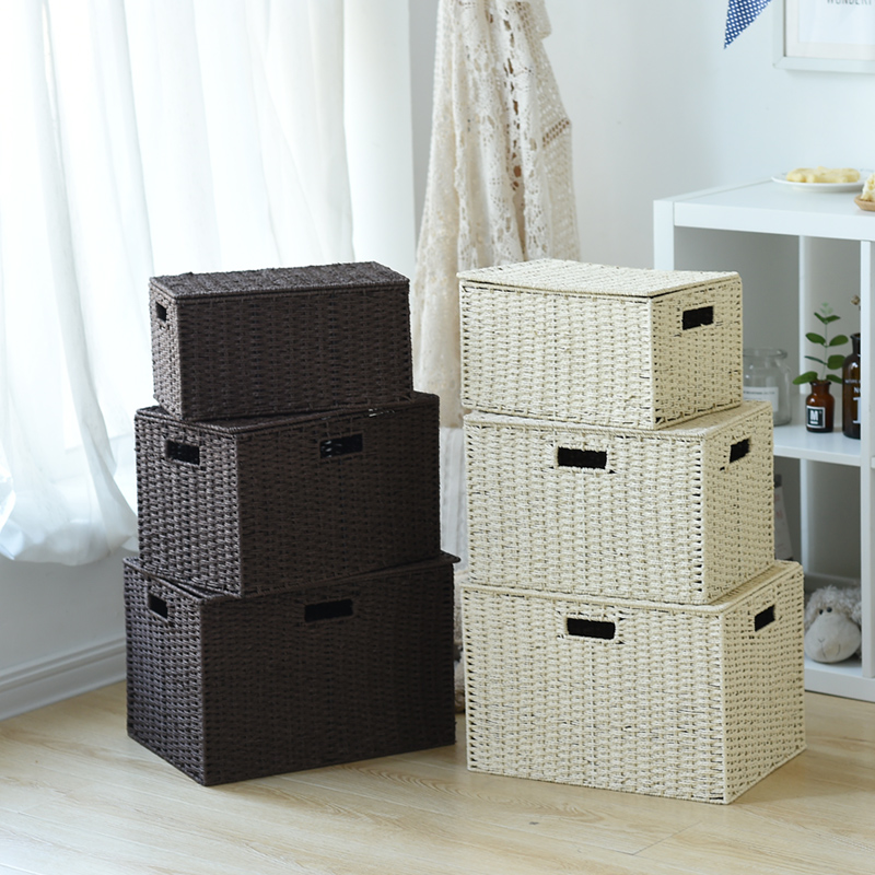 日式藤编收纳箱有盖收纳盒储物盒零食收纳筐带盖编织收纳篮特大号
