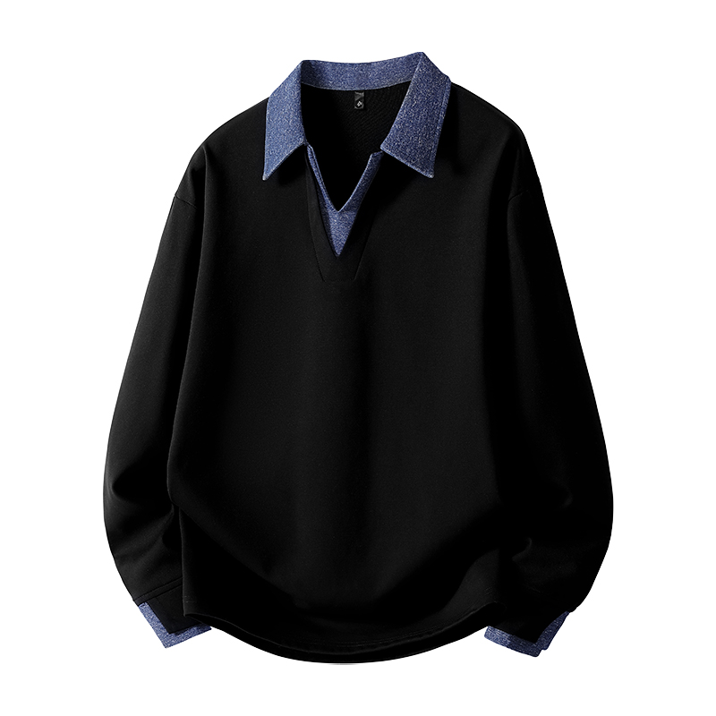 大码男士撞色翻领卫衣春秋新款