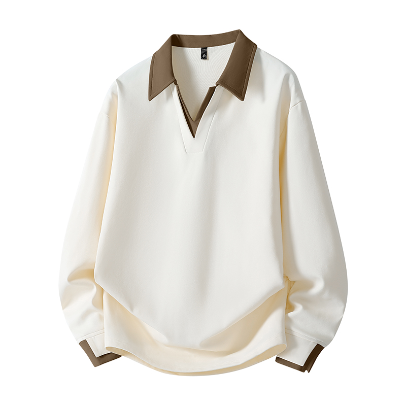 大码男士撞色翻领卫衣春秋新款休闲POLO衫宽松运动长袖t恤打底衫