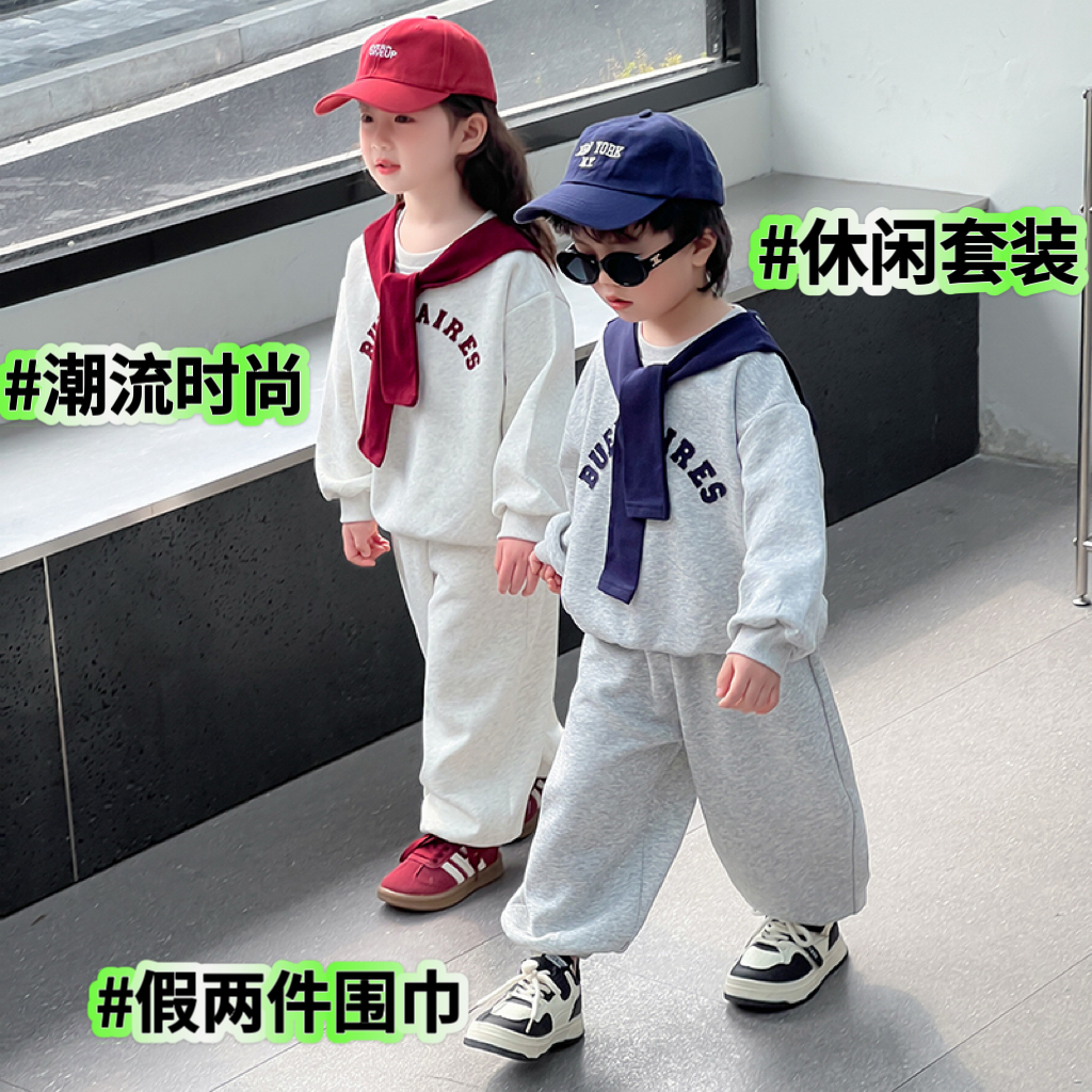 儿童套装秋装新款男童女童学院风三件套宝宝卫衣卫裤春秋季姐弟装