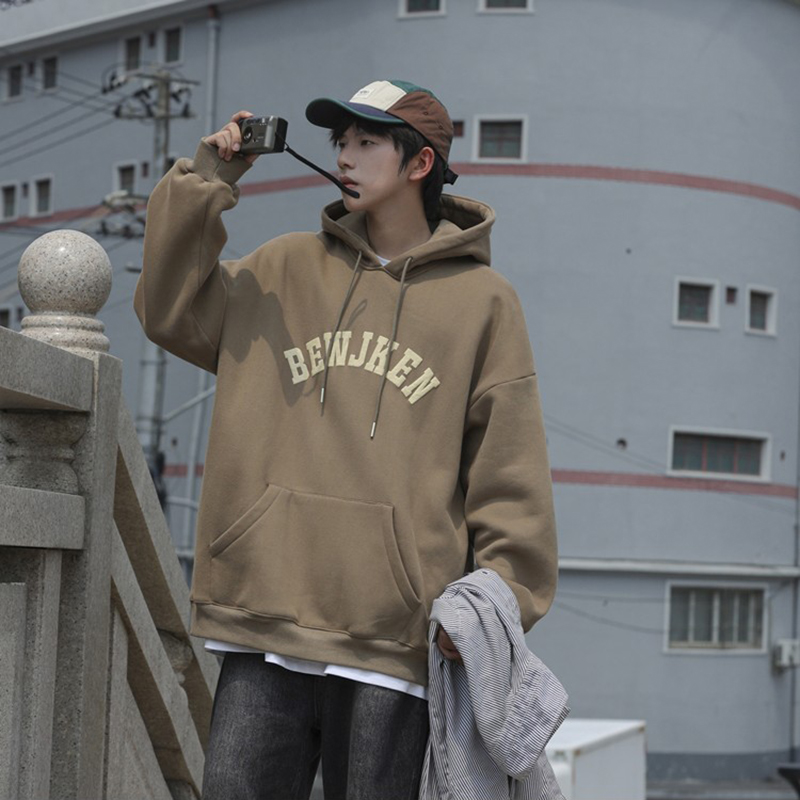 卫衣男美式复古重磅加绒连帽卫衣春秋款oversize潮牌宽松情侣外套