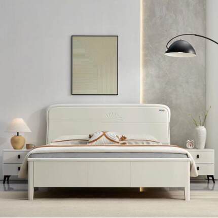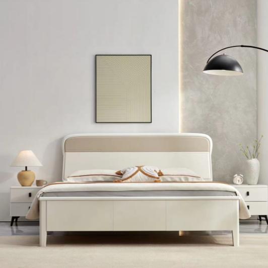 新款灰白色实木床现代简约双人1.8米主卧橡木床