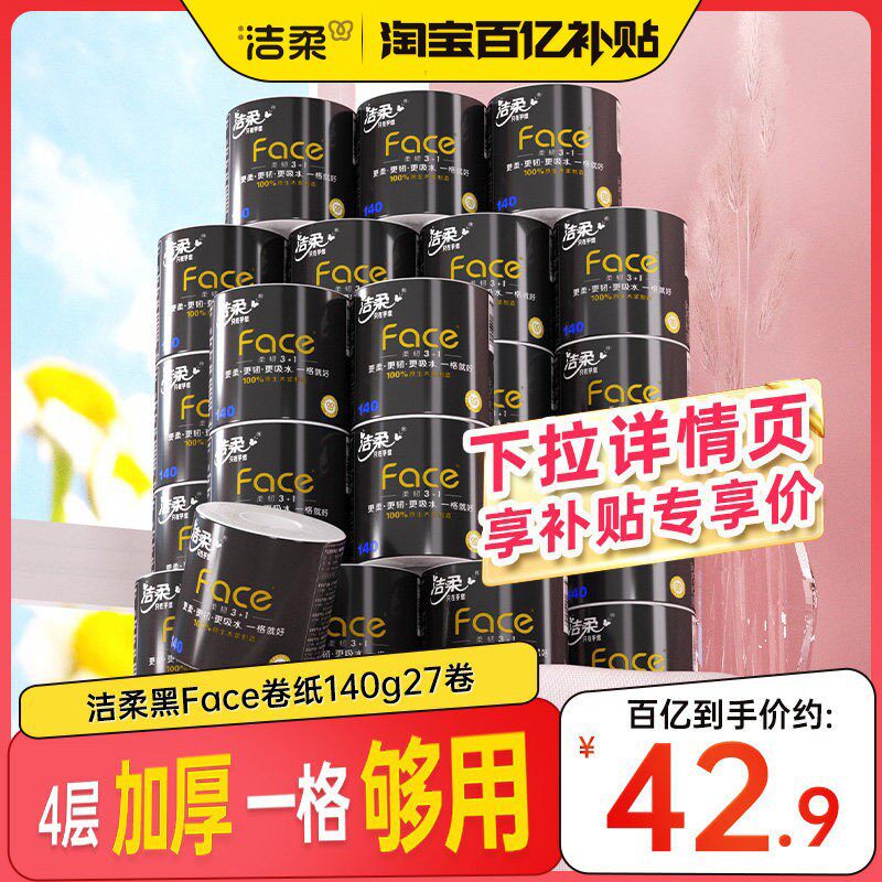 洁柔卷纸加厚卫生纸纸巾卷筒纸4层140g27卷卫生厕纸家用纸实惠装