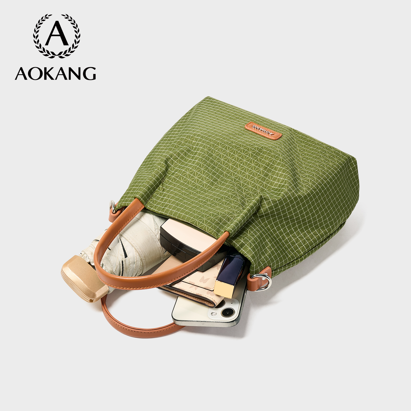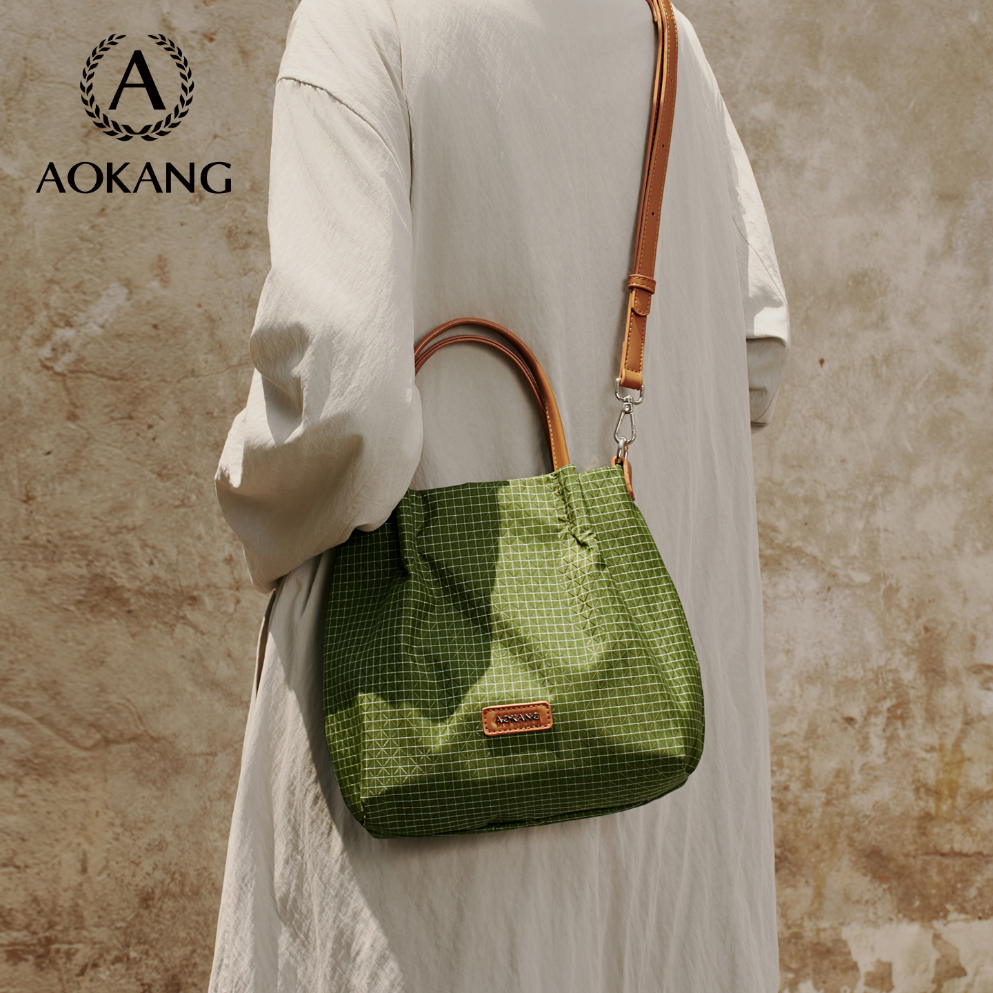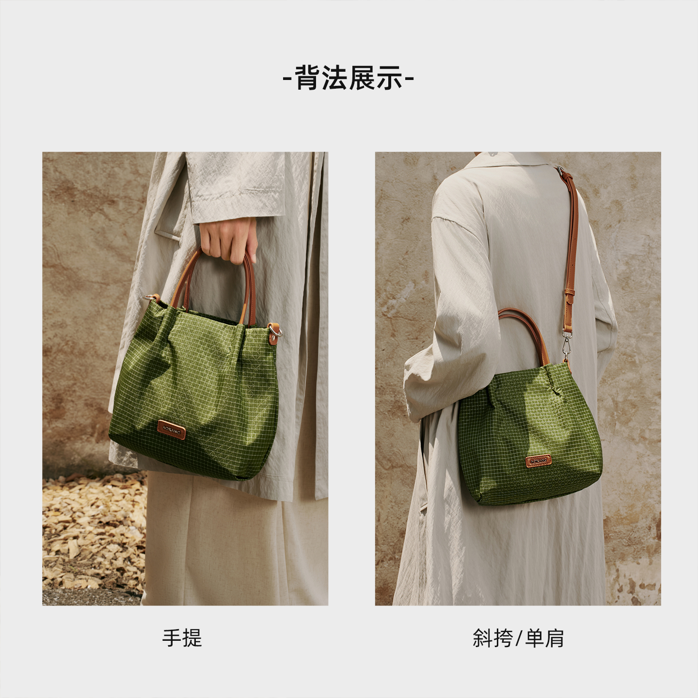 奥康帆布手提包2025新款女包通勤单肩大包高级单肩包大容量水桶包