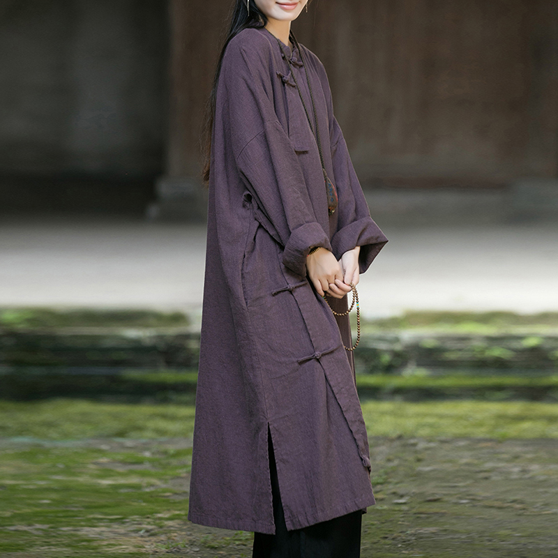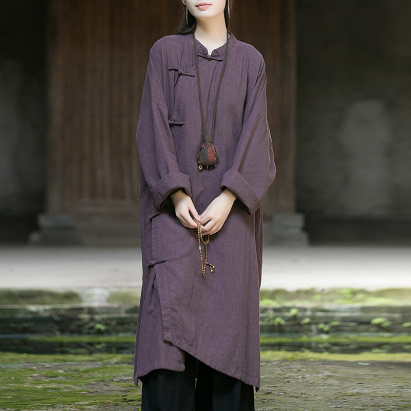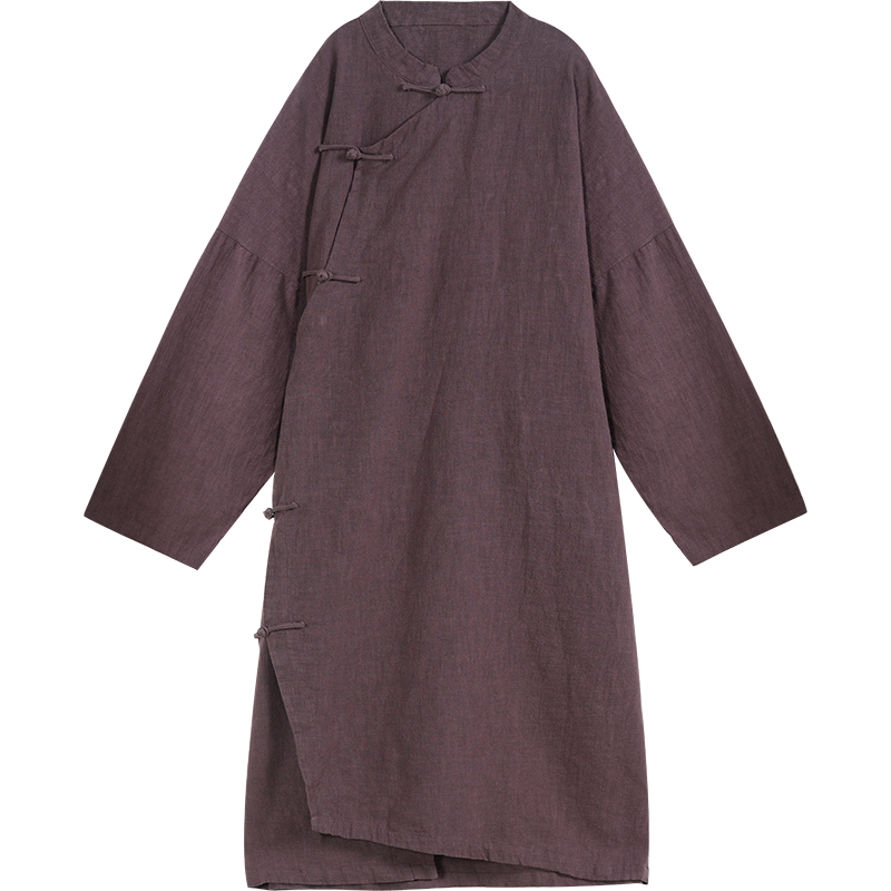 苎麻新中式连衣裙女2025春季新款禅修居士服棉麻复古禅意偏襟袍子