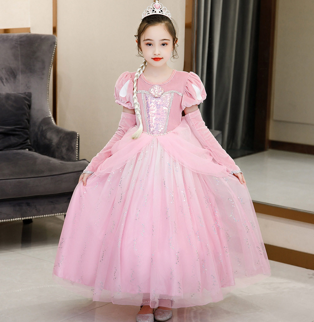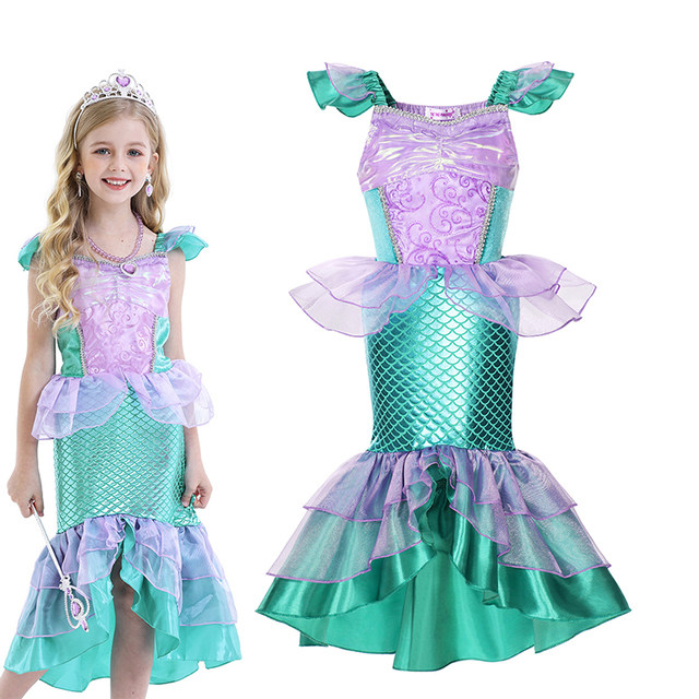 迪士尼爱丽儿美人鱼公主裙女童蓬蓬裙演出服装儿童鱼尾连衣裙礼服