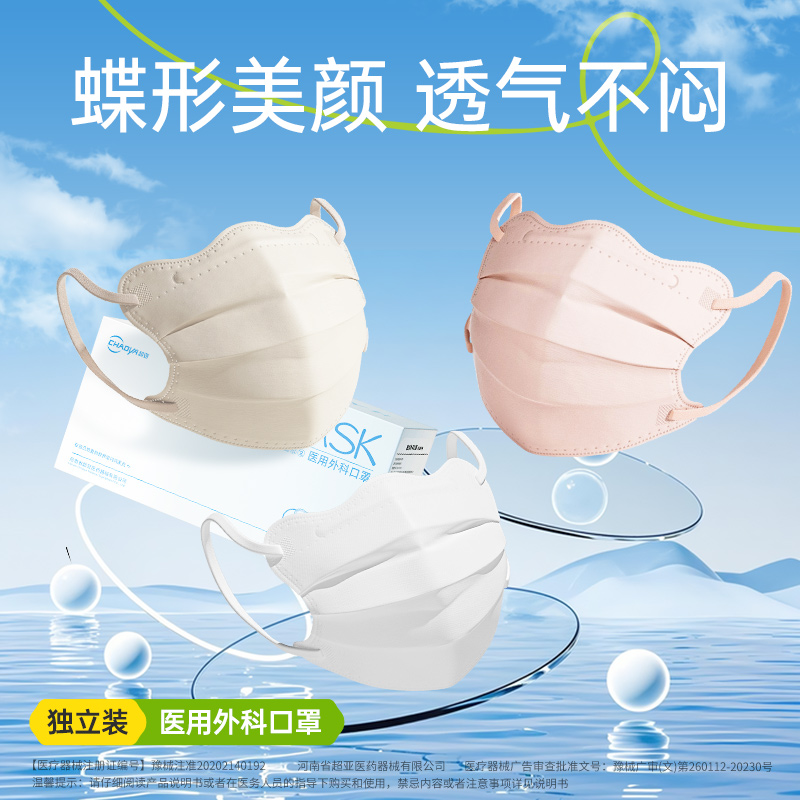 超亚医用外科口罩一次性医疗女高颜值白蝶形防晒防紫外线2025新款