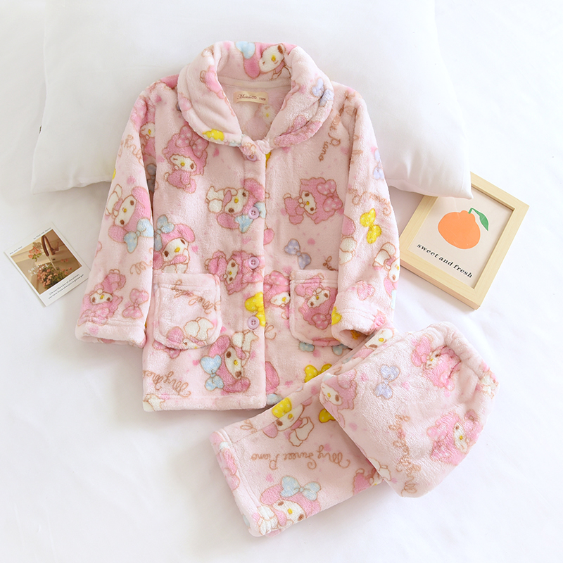 米筱米儿童睡衣套女童珊瑚绒秋冬加厚法兰绒家居服宝宝可爱亲子装