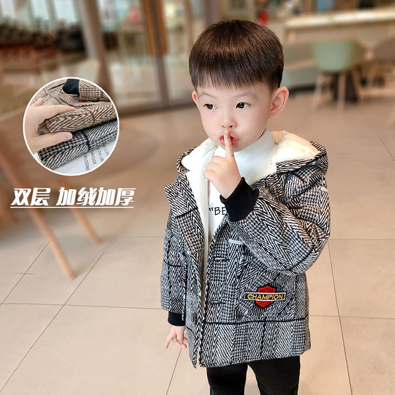童装宝宝外套秋冬加绒儿童呢子大衣中长款加厚男童小童毛呢冬装潮