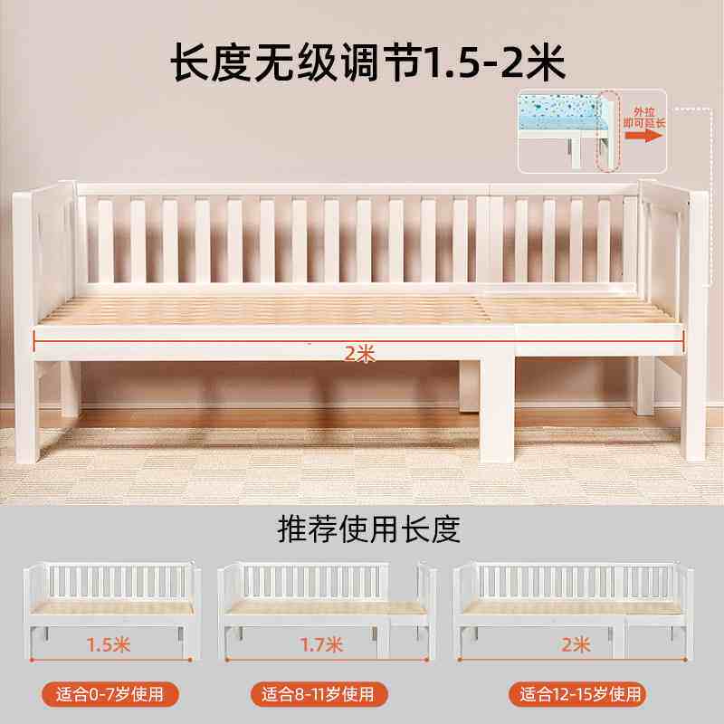 爱里奇儿童拼接床实木可公主床女孩床边男孩加宽婴儿床大拼接加长