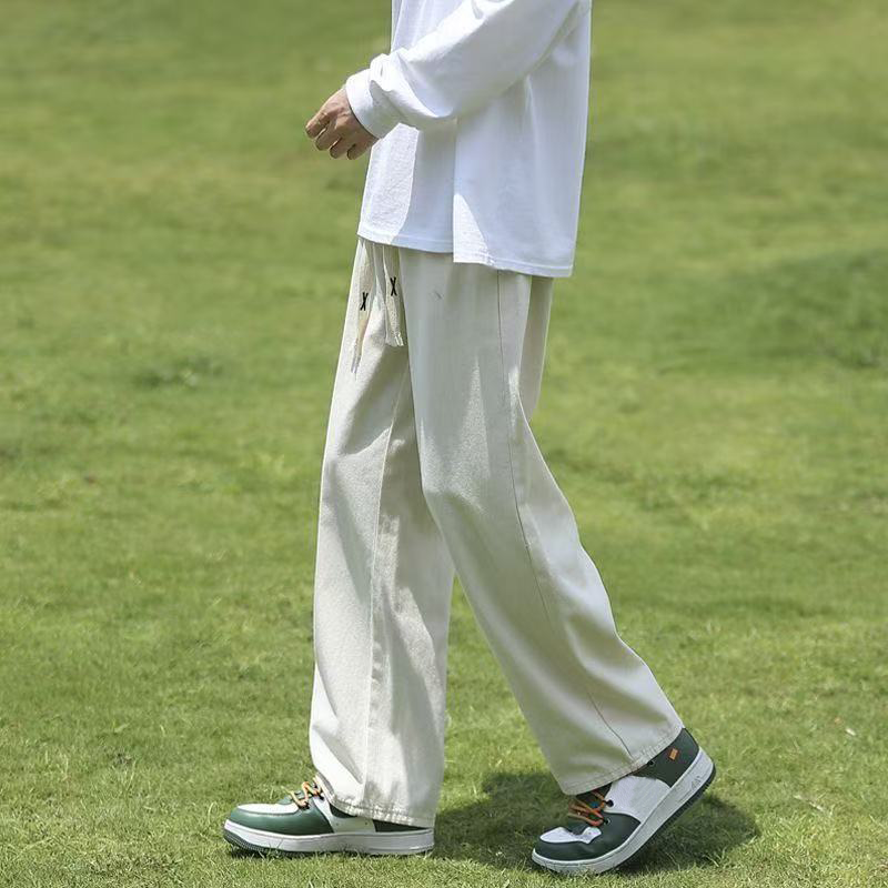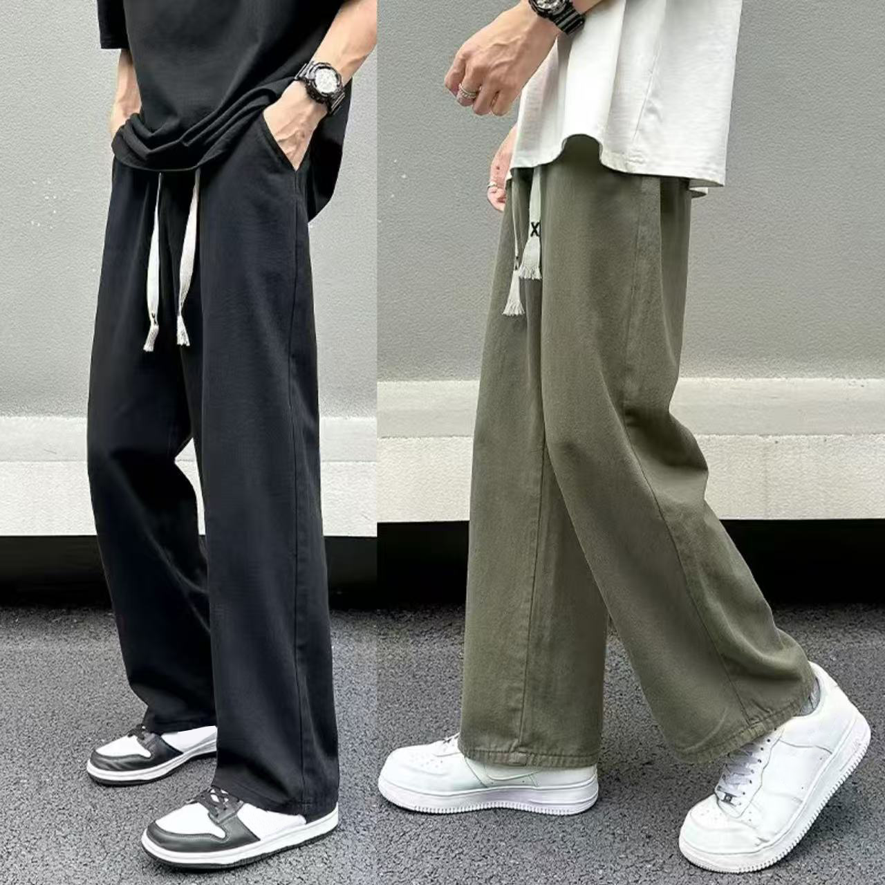 裤子男夏季美式宽松运动长裤港风百搭阔腿直筒裤男青年纯色休闲