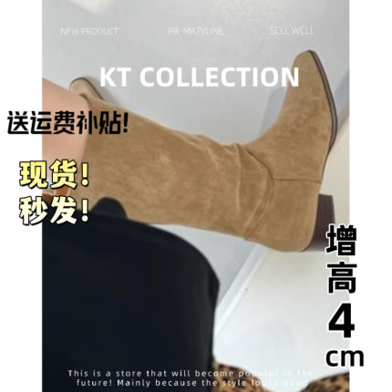 羊皮版!增高4cm~复古风方头粗跟高筒靴女百搭时装靴