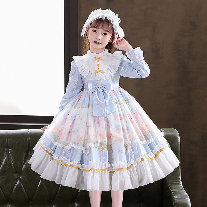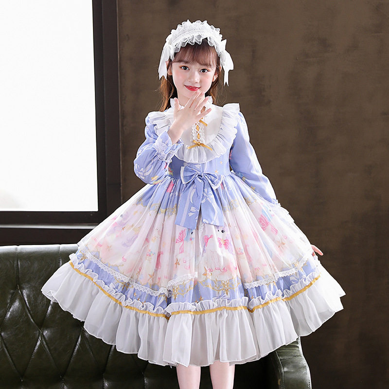 正版洛丽塔女童公主裙加绒儿童洋气甜美生日裙子女大童2025新款