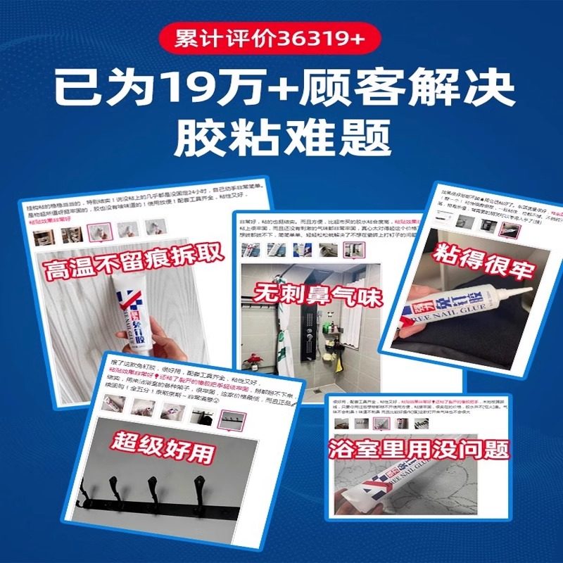 强力高粘免钉胶高粘度粘墙面金属墙壁镜子瓷砖踢脚线卫生间置物架贴墙专用家用胶多功能粘得牢免打孔胶水墙胶