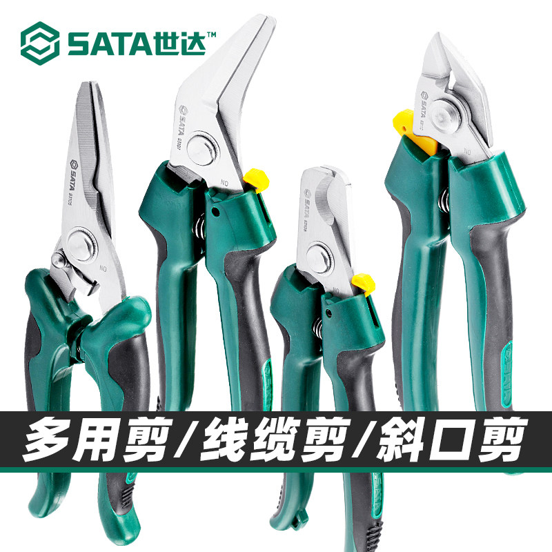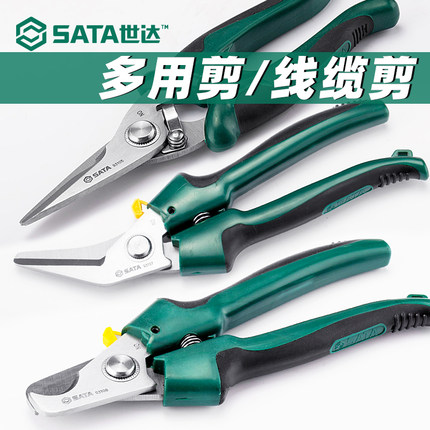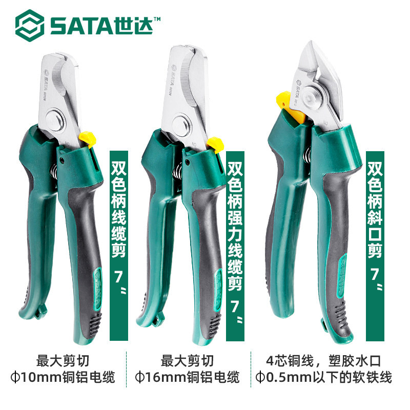 世达电缆剪刀手动剪铜线剪刀双色柄电工多用剪电览线缆剪斜口剪