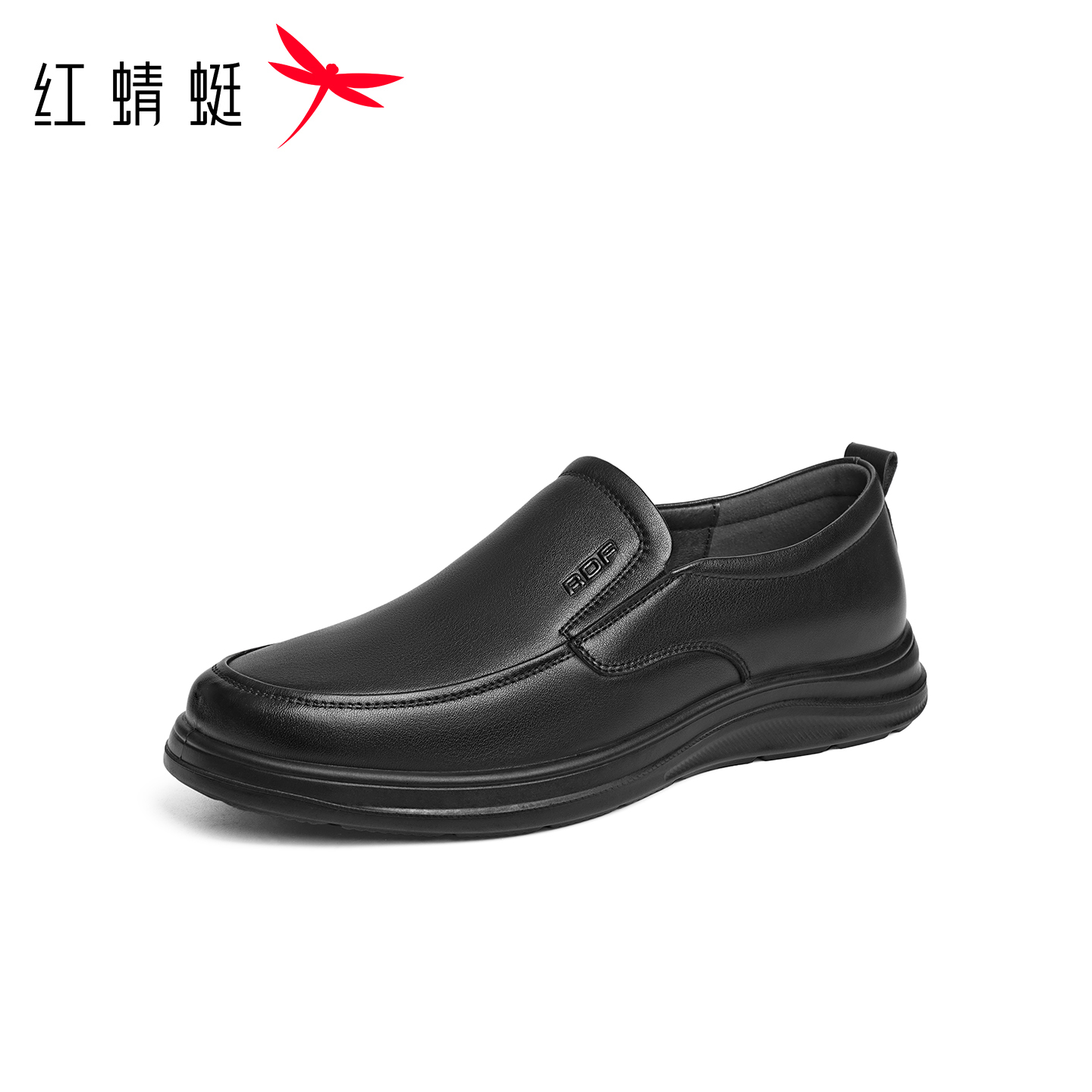 红蜻蜓男鞋2025秋季新款男士休闲皮鞋一脚蹬真皮软底中老年爸爸鞋