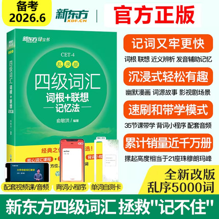 新东方四级英语词汇书备考2026年6月四级词汇词根+联想记忆法乱序版四六级单词书大学英语四级考试英语真题试卷视频俞敏洪绿宝书