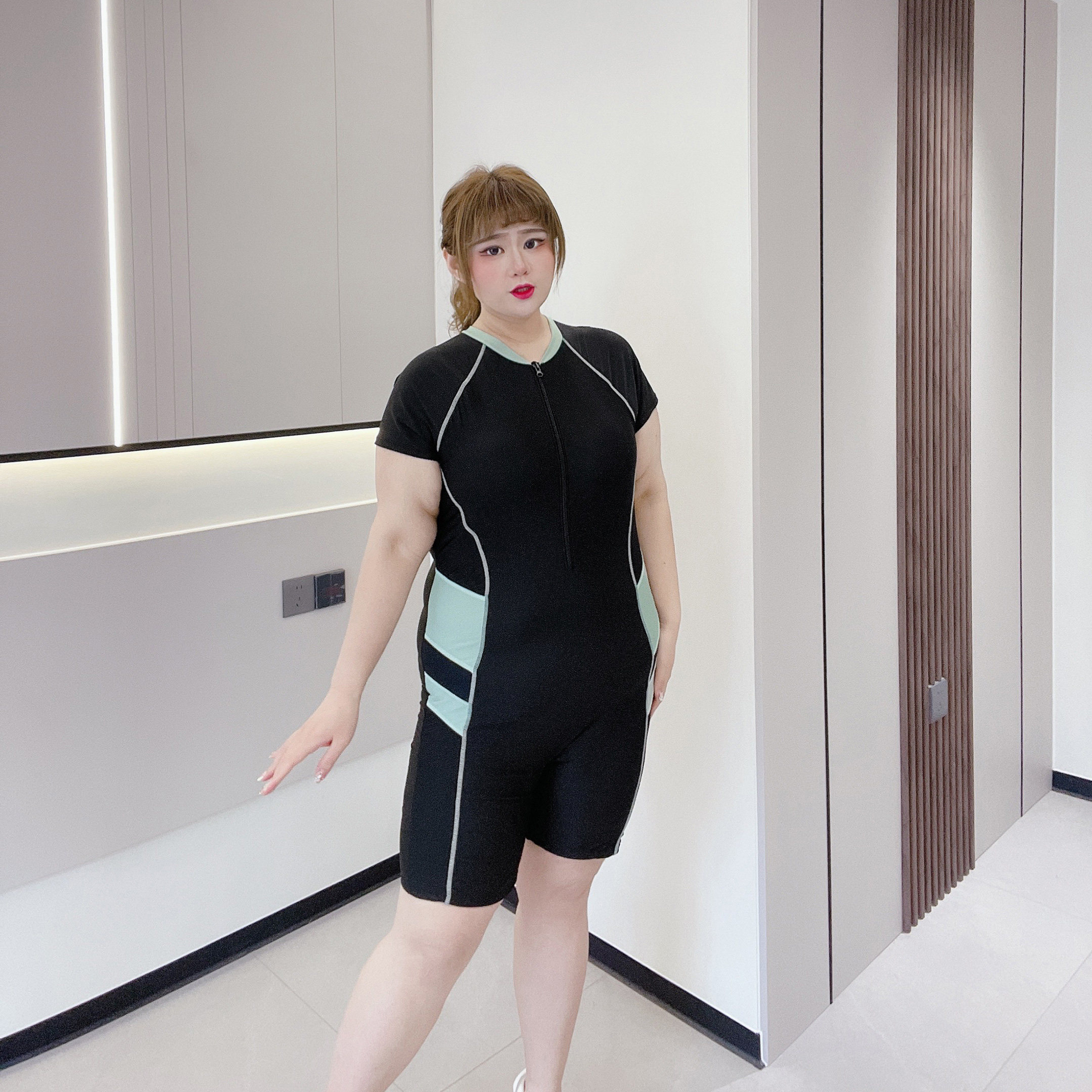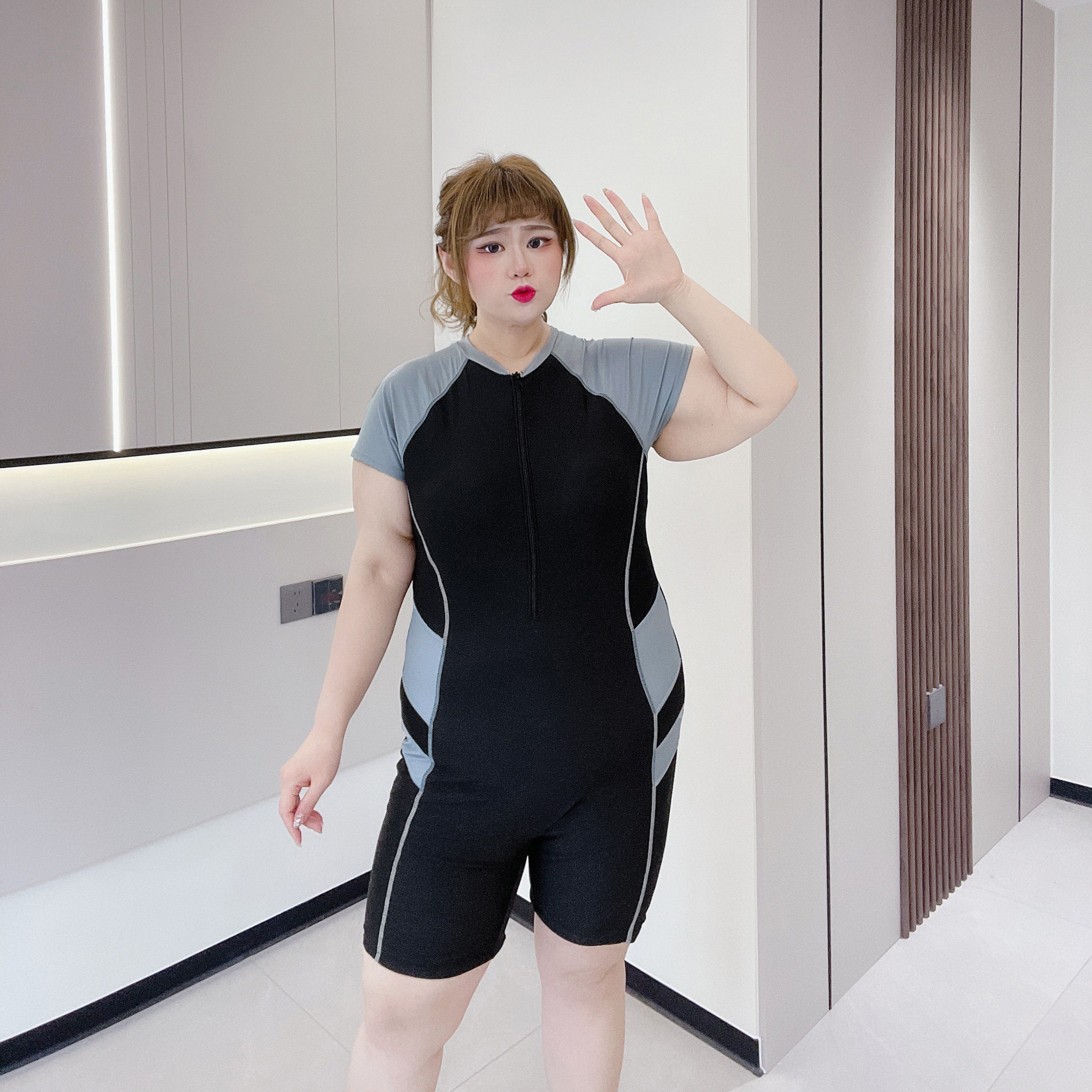 230斤胖莹莹弹力胖mm简约连体运动型保守学生冲浪服游泳大码泳衣