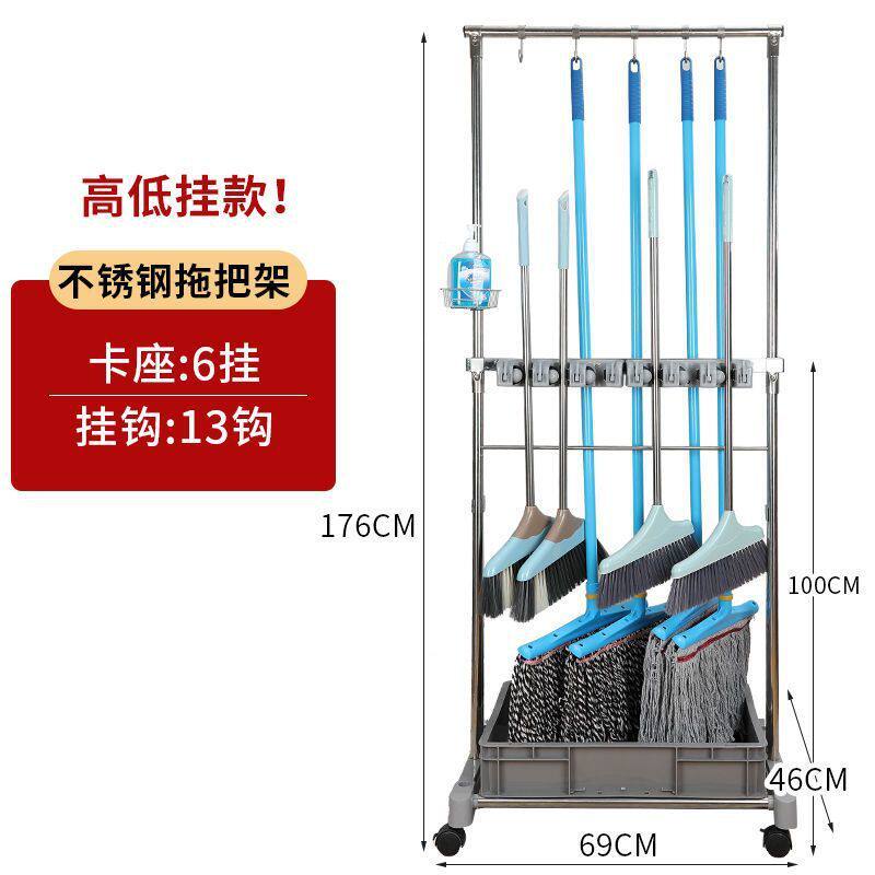 拖把架不锈钢移动阳台清洁收纳扫把卫生学校落地式商用置物架挂式