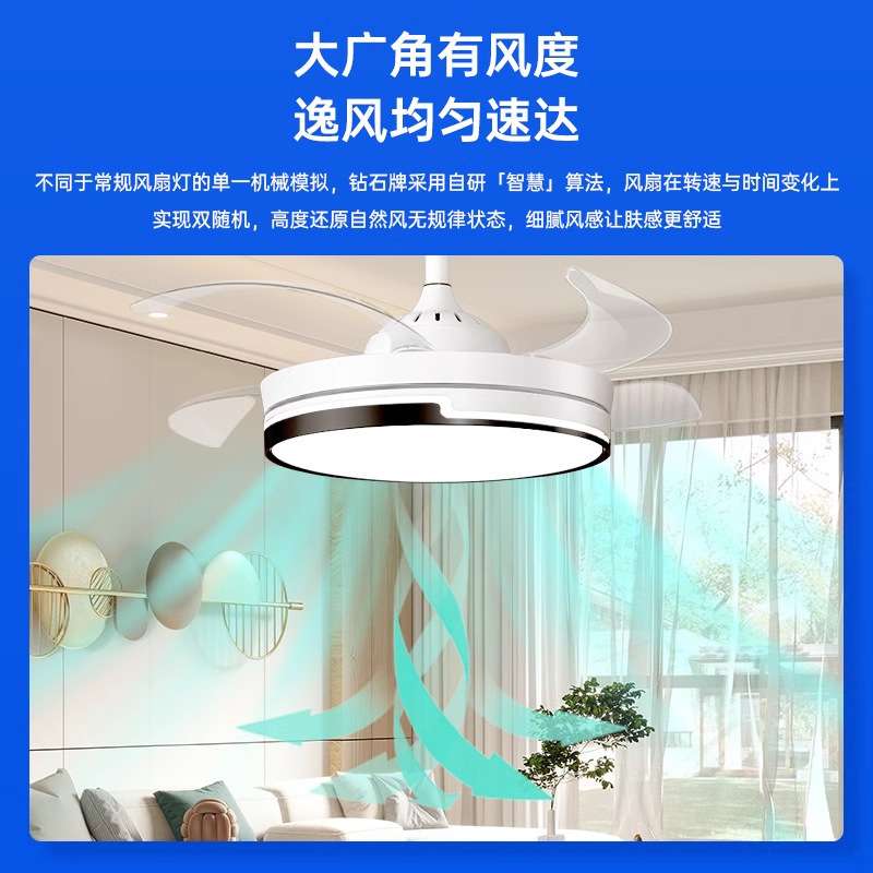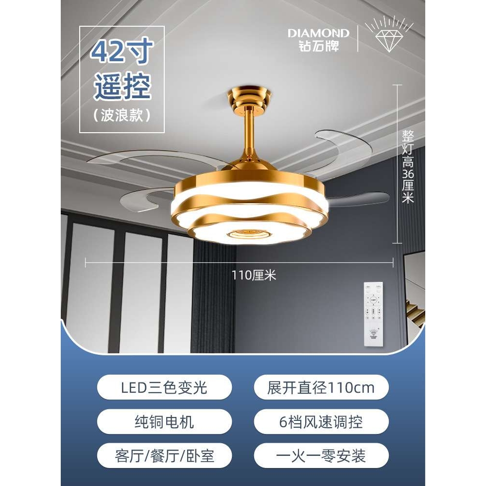 钻石牌隐形风扇灯客厅餐厅吊扇灯家用一体吊灯2024年新款电扇灯