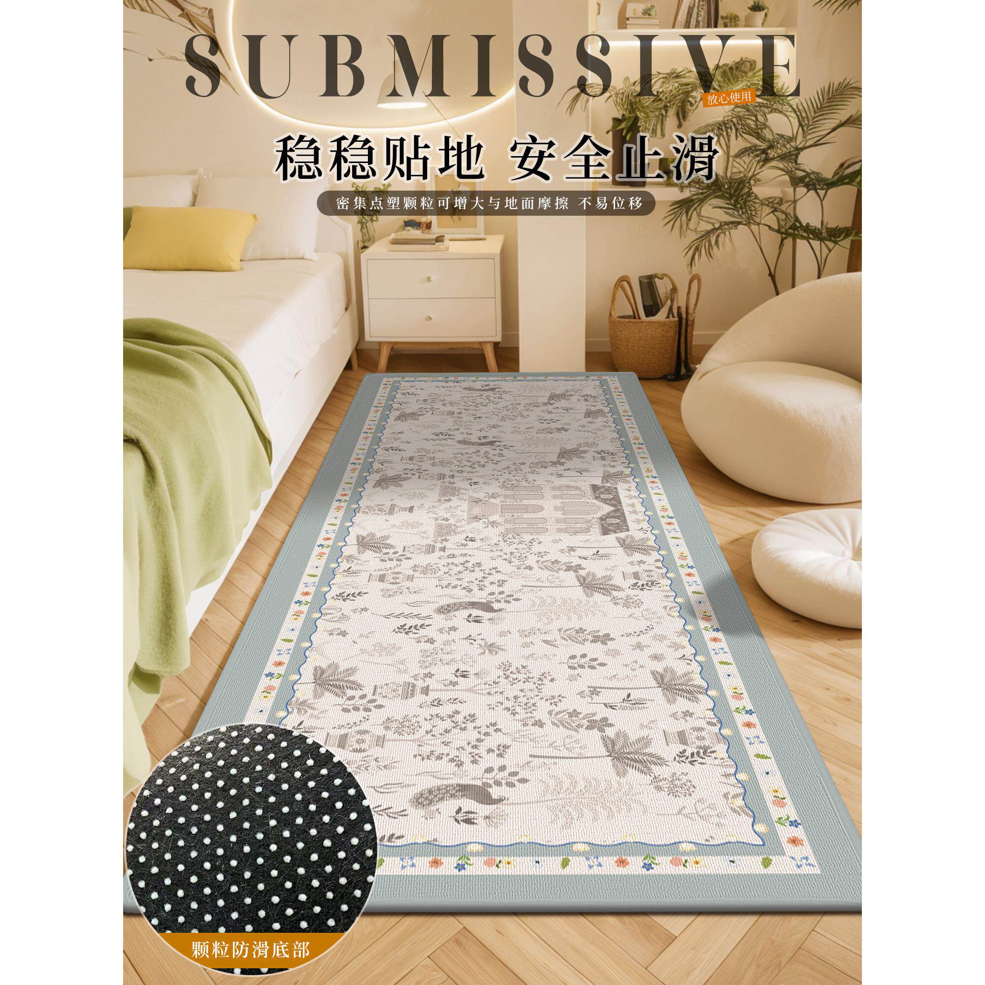 法式卧室地毯长防滑海湾窗垫家庭房间地板垫装饰床边毯子床下床脚