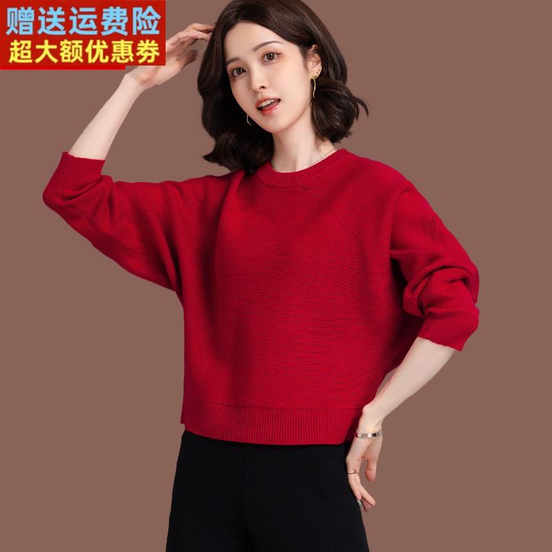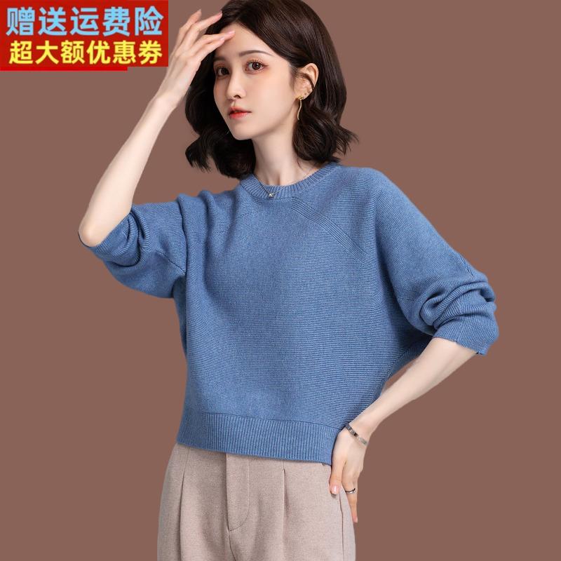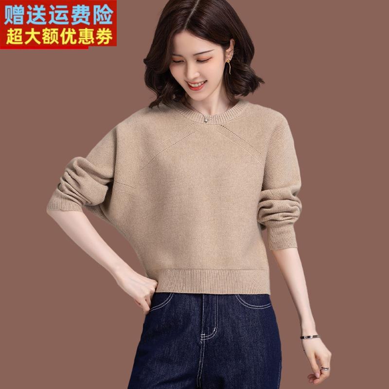 蝙蝠衫毛衣女春秋新款时尚短款宽松小个子上衣针织内搭打底羊毛衫