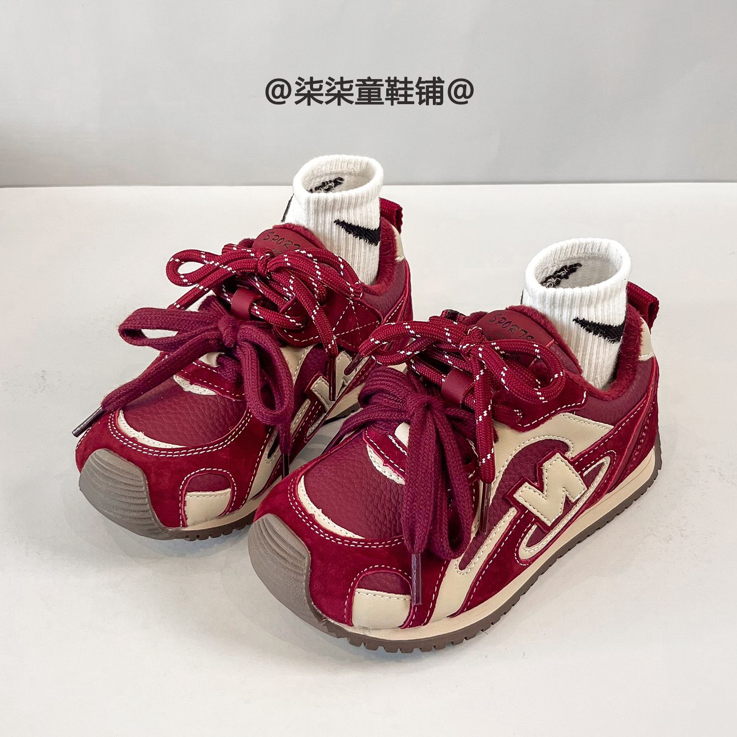 新款真皮加绒加厚二棉鞋儿童2025冬季女童防寒保暖棉鞋男童运动鞋