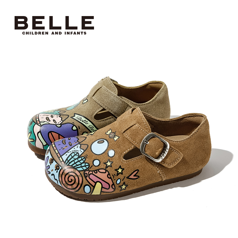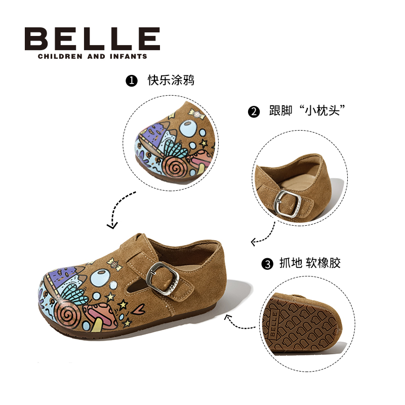百丽童鞋2025秋冬新款儿童勃肯鞋女童宝宝软底时尚单鞋涂鸦小皮鞋