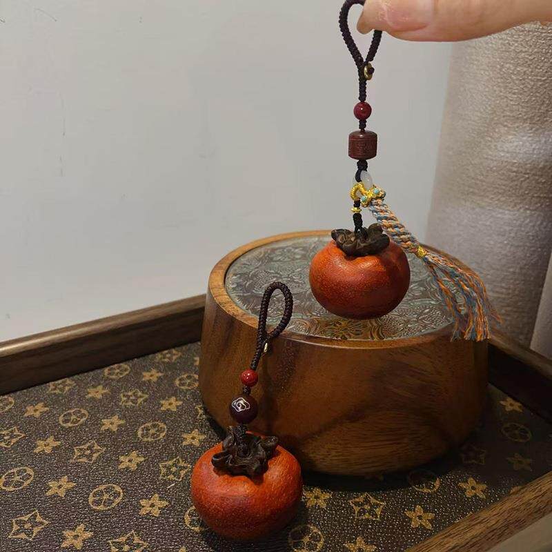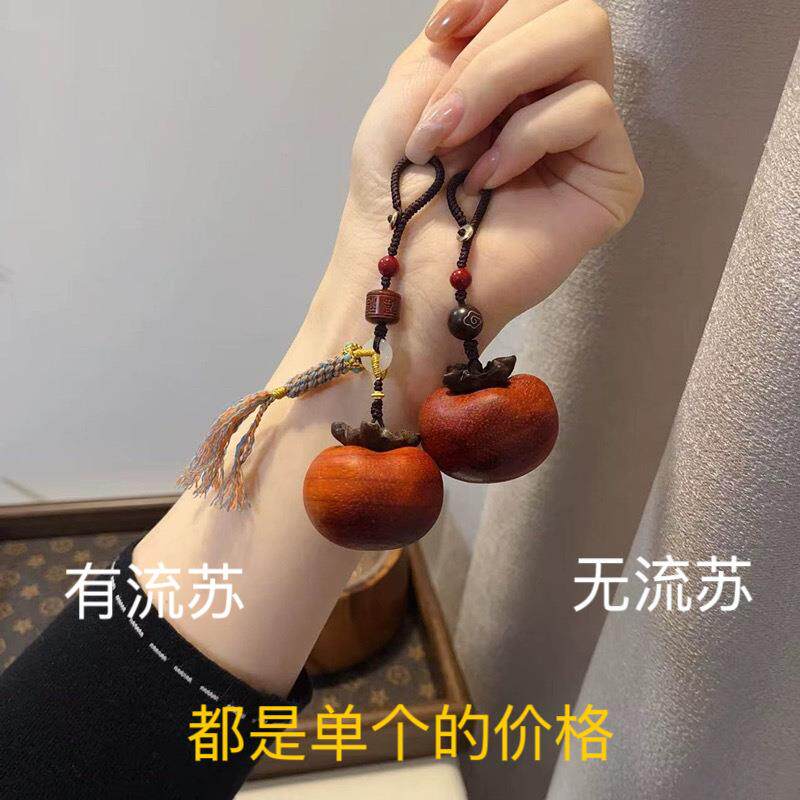 紫檀事事如意柿子手把件文玩钥匙扣摆件送礼装饰品挂件钥匙扣