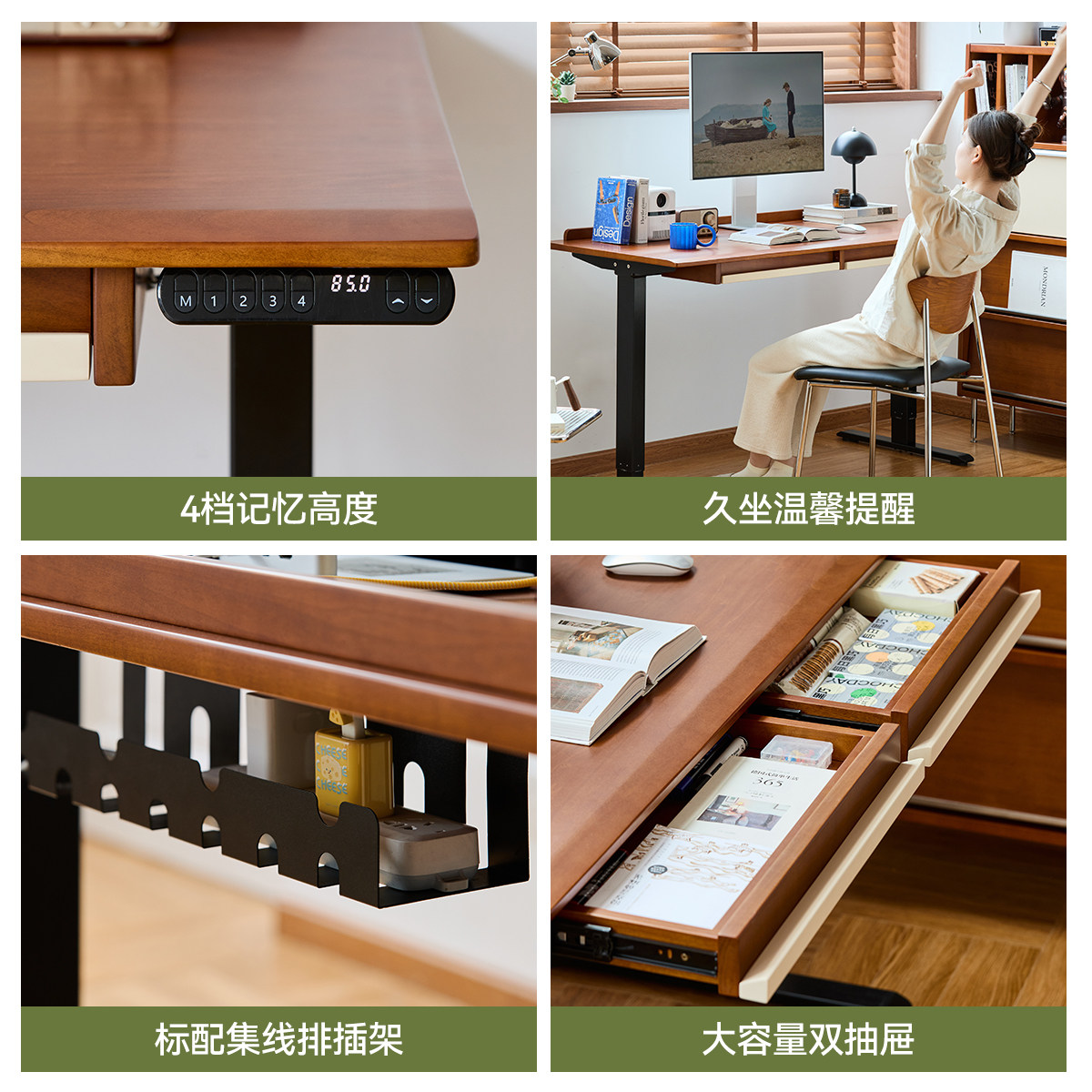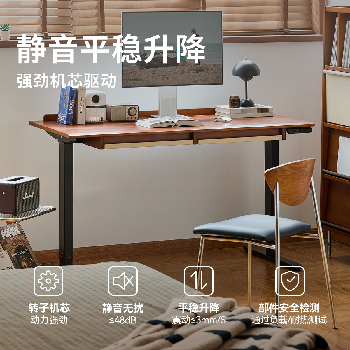 出乎生活家具密斯电动升降桌黄杨木书桌办公桌站立工作台电脑桌子