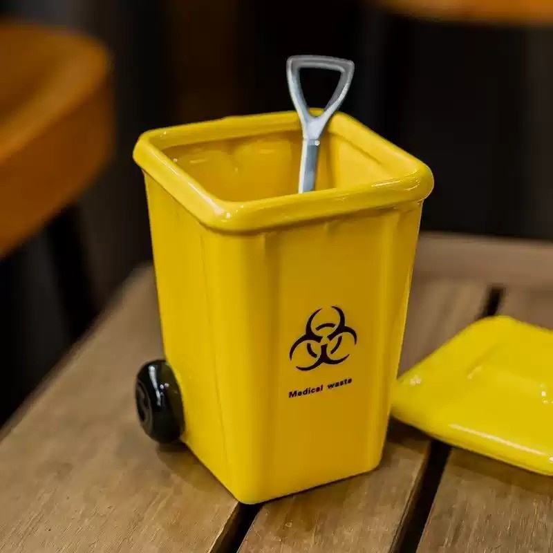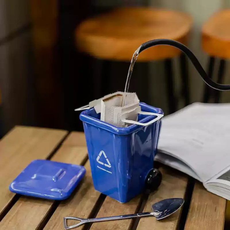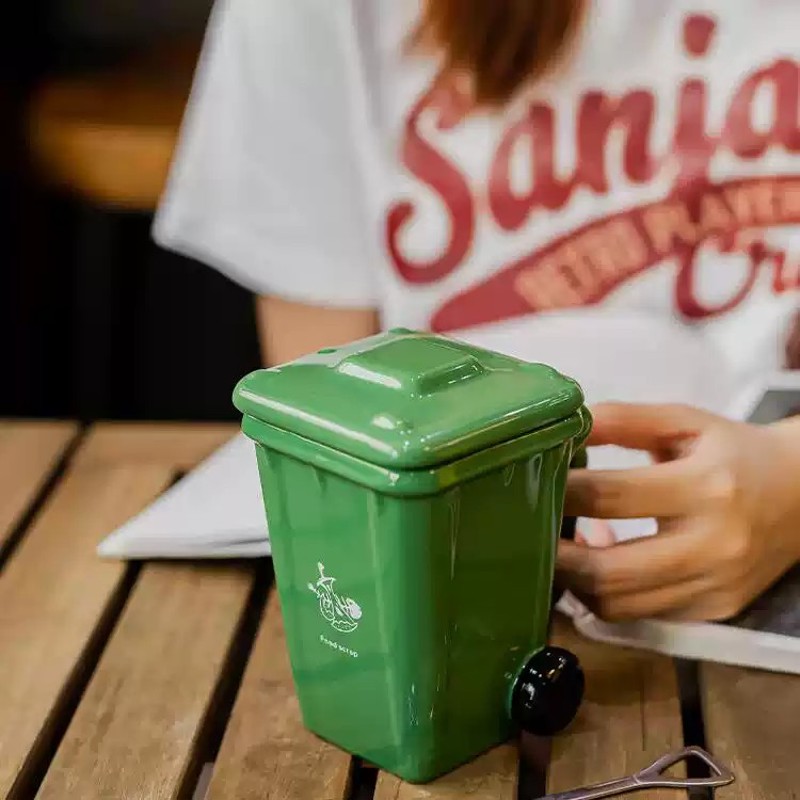 垃圾桶造型马克杯创意陶瓷喝水杯子个性网红搞怪带盖咖啡杯送礼物