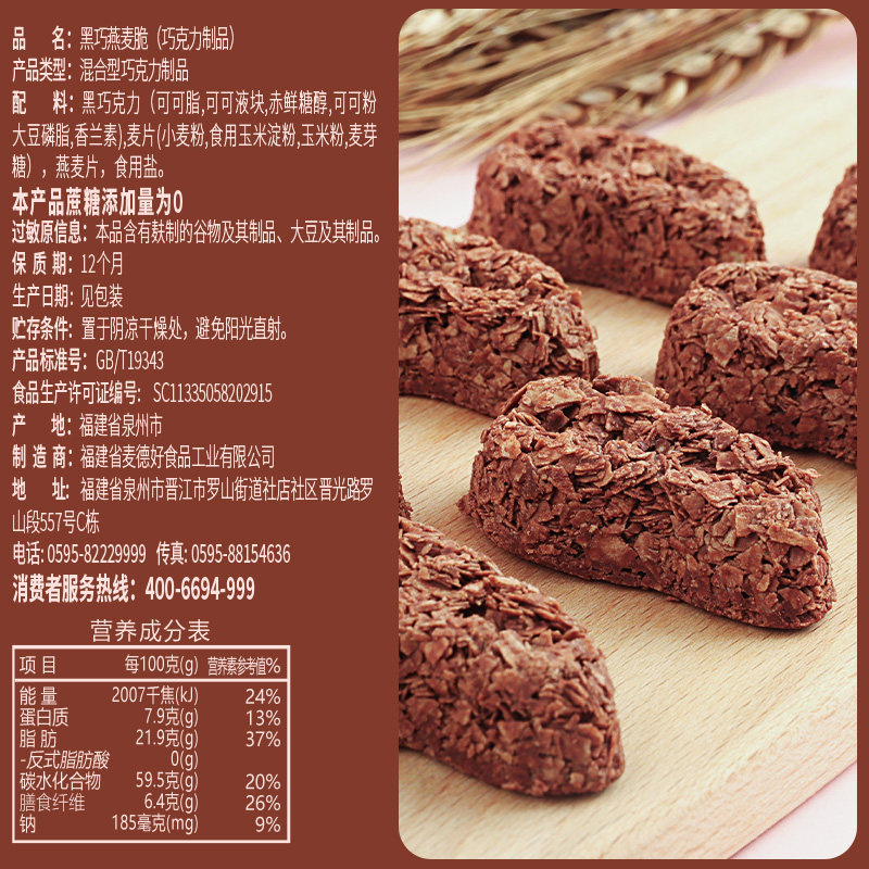 麦德好黑巧燕麦脆88%黑巧克力谷物粗粮代餐棒零食小吃休闲食品