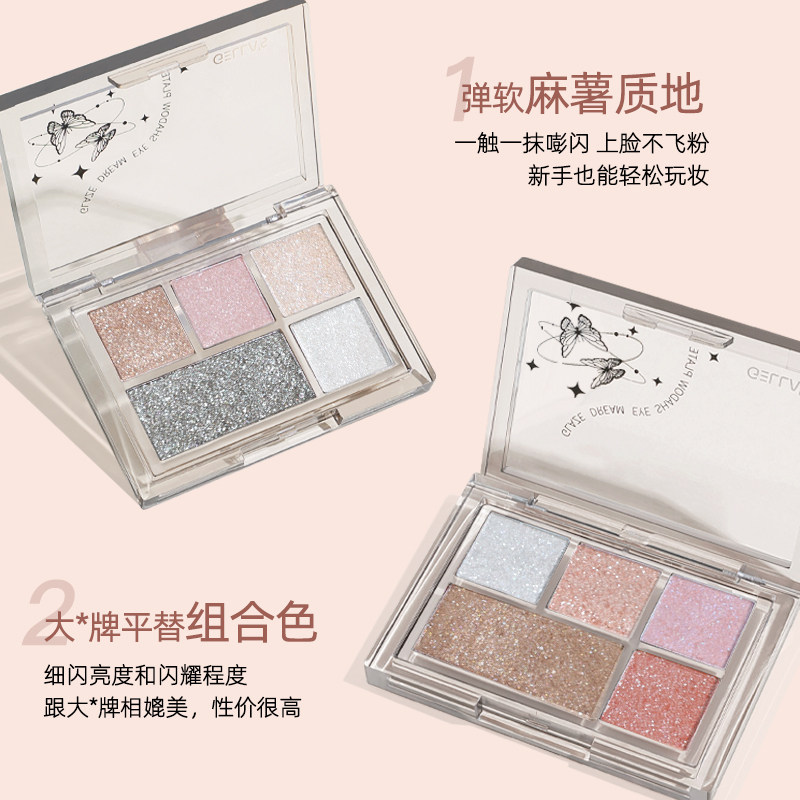 gellas珠光眼影盘五色清透碎钻爆闪亮晶晶牛郎高光卧蚕眼头提亮