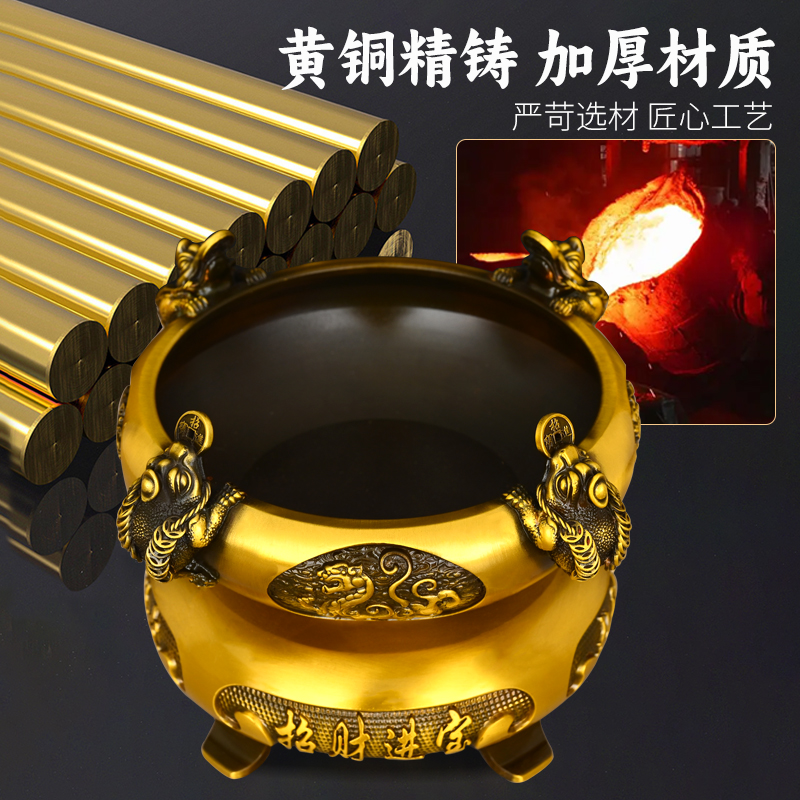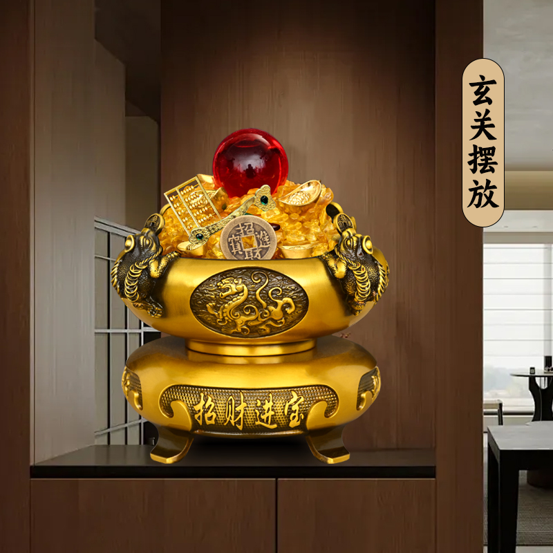 四方纳财聚宝盆摆件黄铜时来运转聚宝盆家居玄关装饰摆设九转乾坤