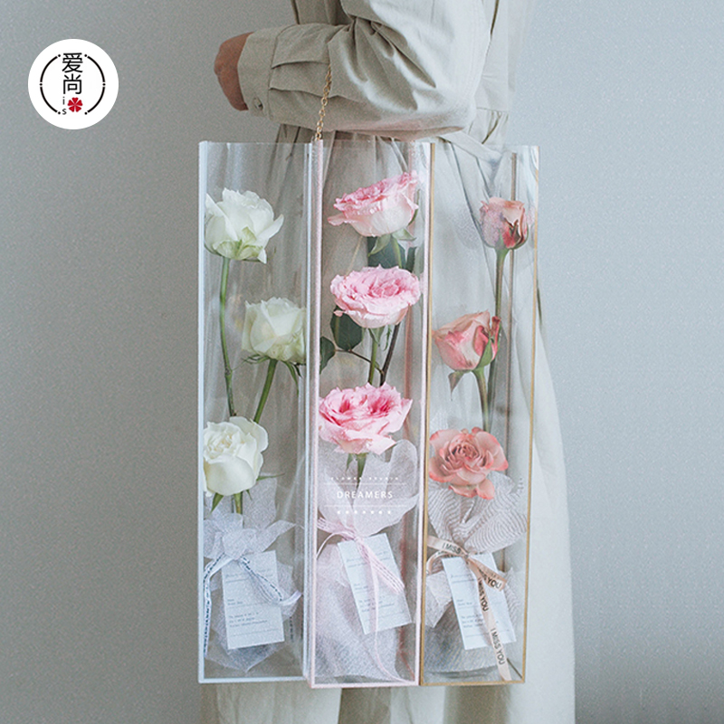 透明非你莫属手提盒插花鲜花包装