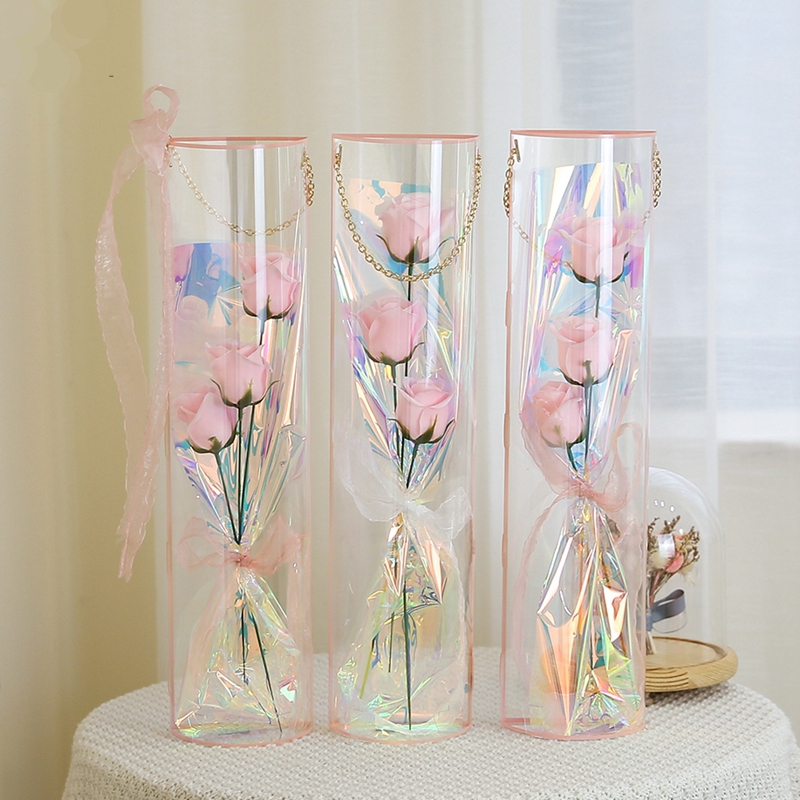 新款非你莫属母亲节pvc透明鲜花包装玫瑰手提盒插花花盒包装材料