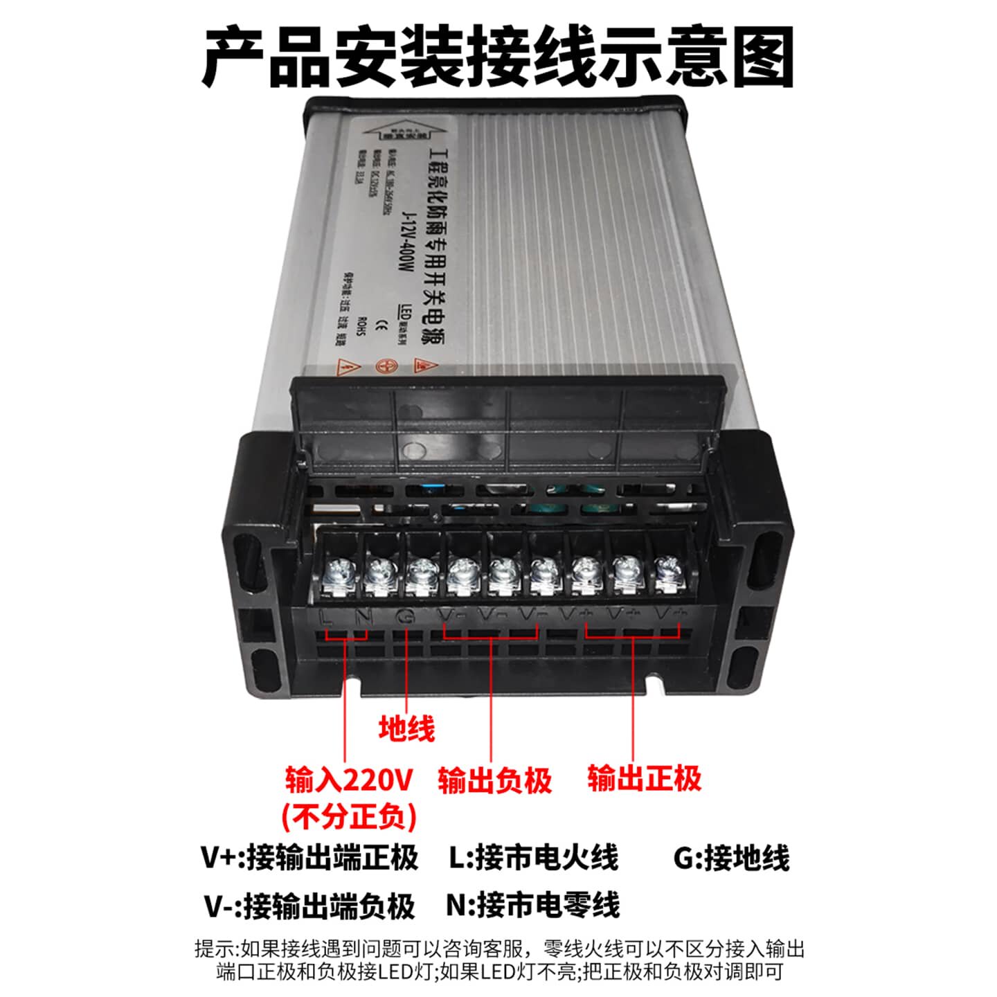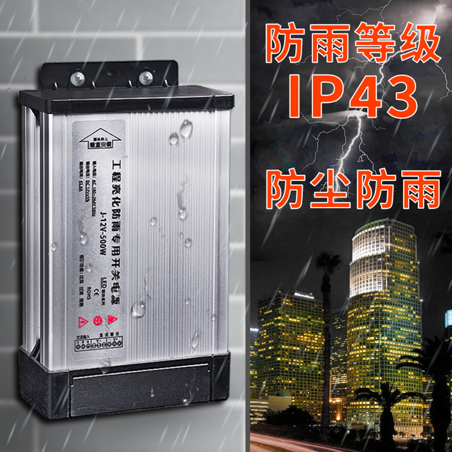 LED防雨开关电源12V400W户外发光字广告招牌灯箱24V变压器