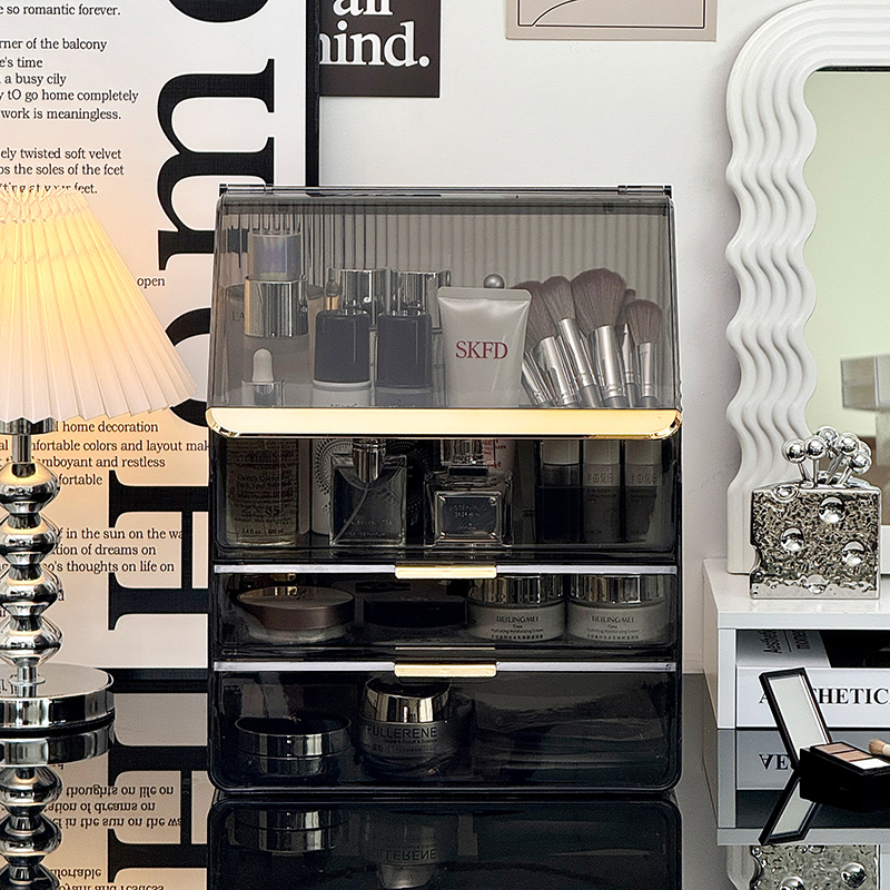 防尘化妆品收纳盒梳妆台桌面护肤品口红抽屉置物架子透明整理箱柜