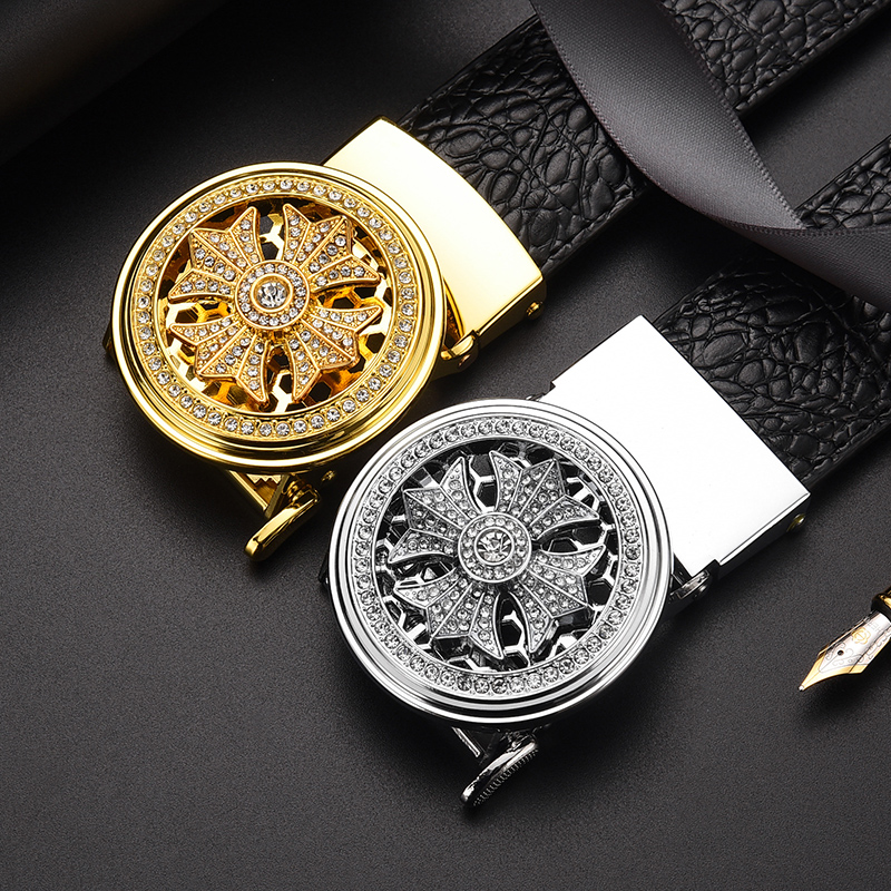 男士旋转皮带真皮潮流年轻人自动扣韩版百搭时来运转牛皮休闲腰带