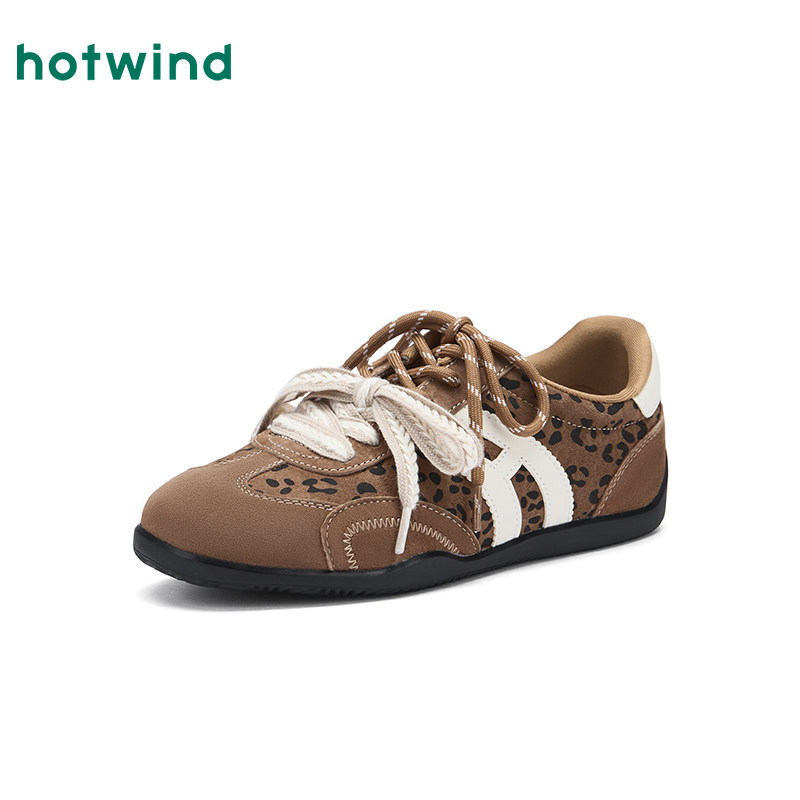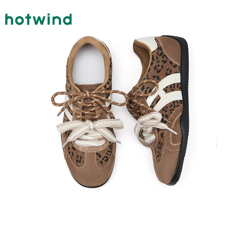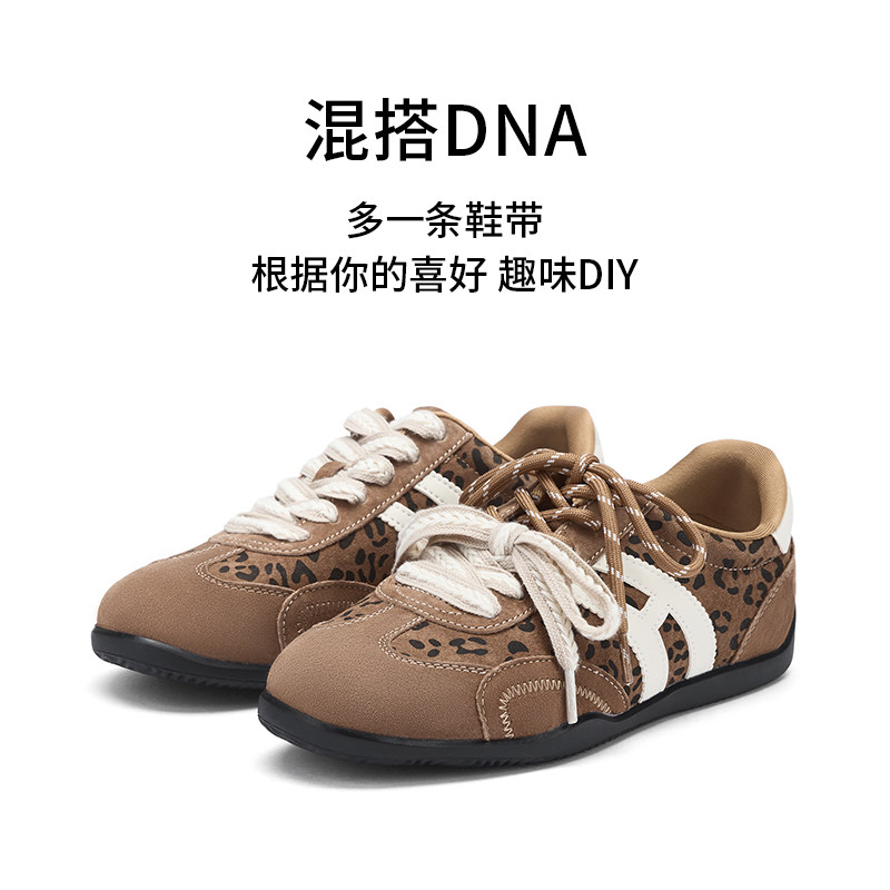 热风豹纹德训鞋女款2026年春季新款薄底百搭运动休闲鞋复古女鞋子