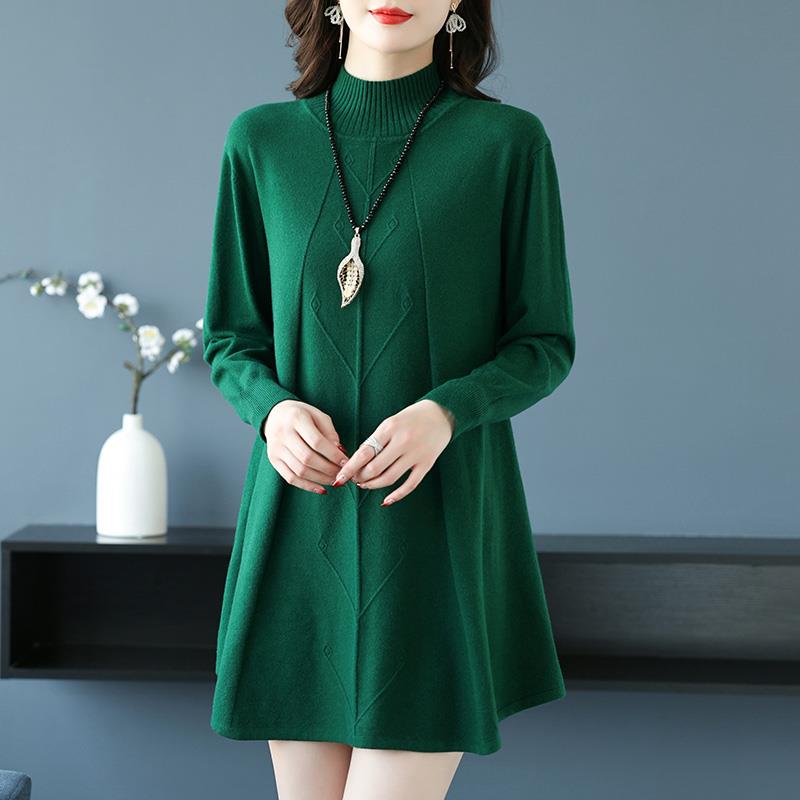 羊绒衫羊毛中长款打底衫女秋冬胖mm遮肚子上衣洋气百搭针织连衣裙