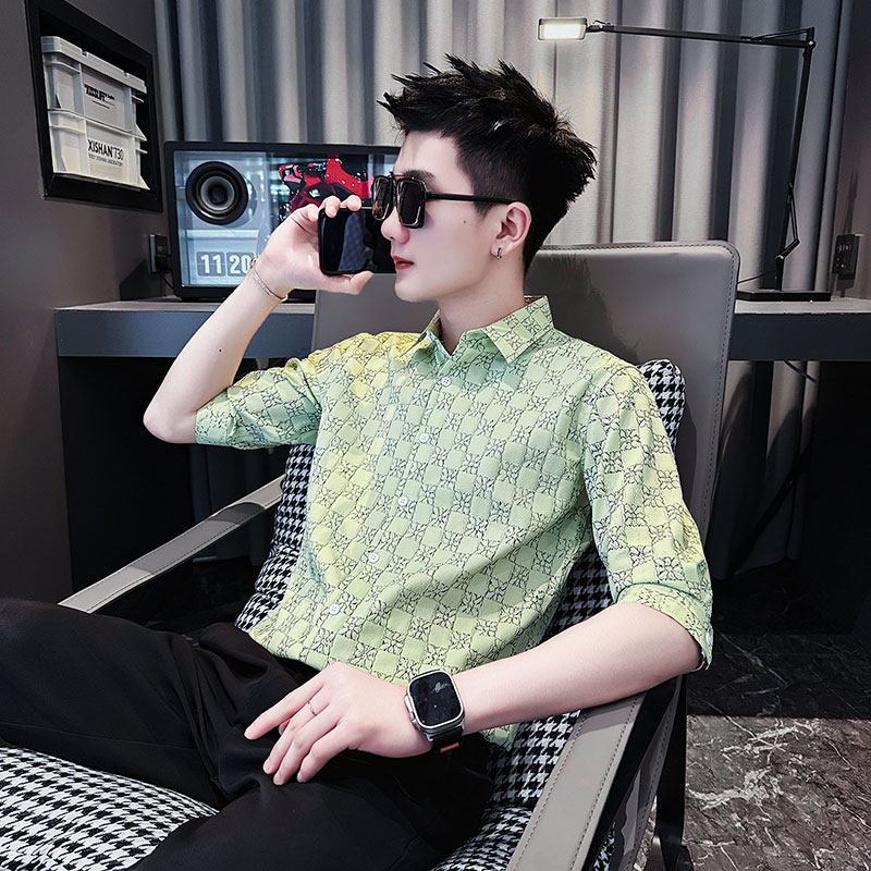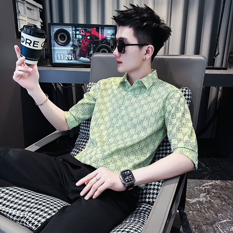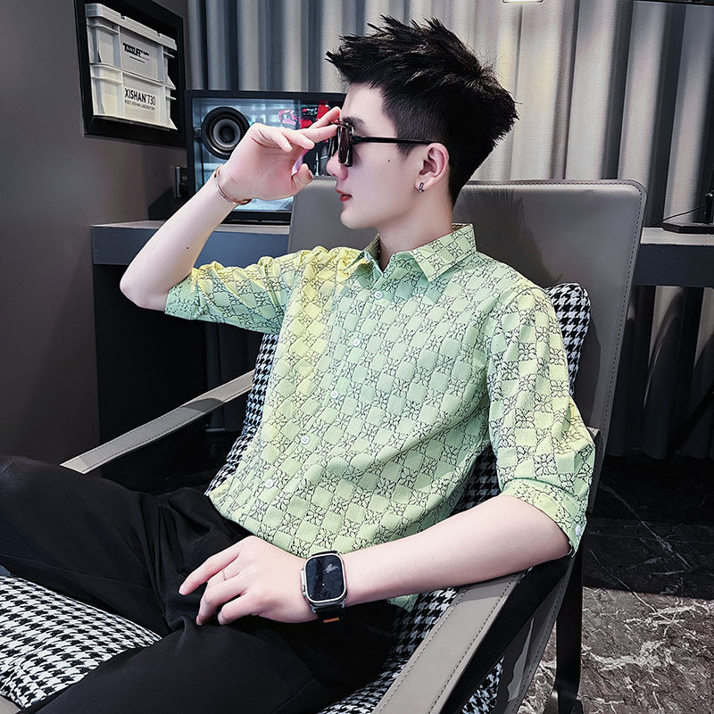 痞帅七分袖衬衫男款修身超火帅气短袖2025新款高级感潮牌男士中袖