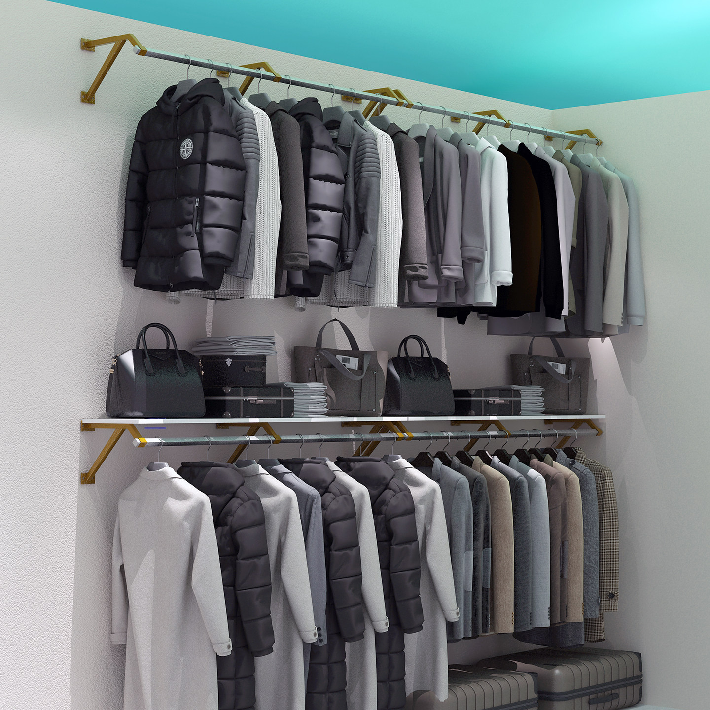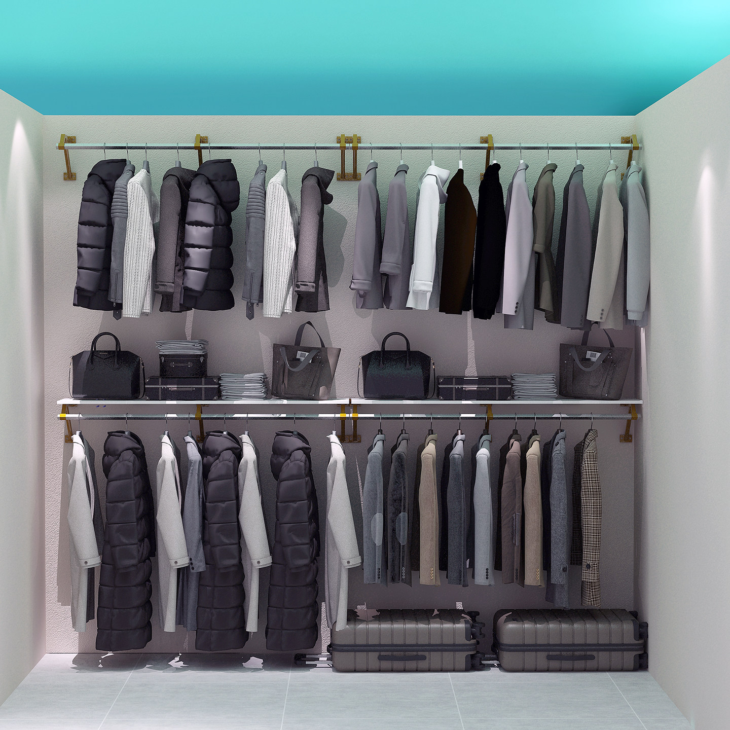 服装店上墙金色挂衣架女装店衣服展示架不锈钢壁挂货架家用衣帽架