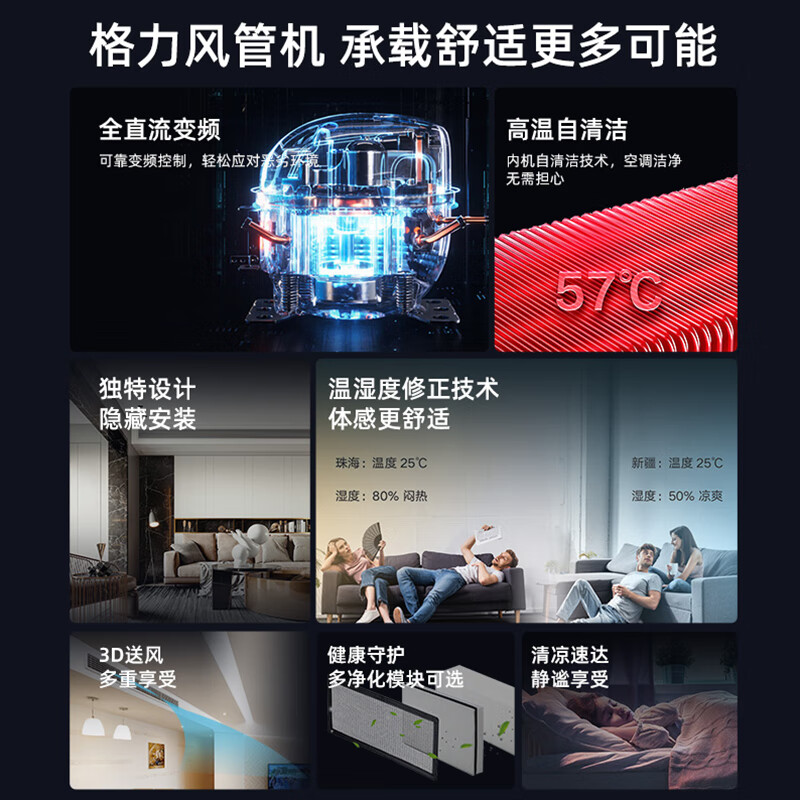 格力风管机K+Pro3匹4匹2匹1.5匹超1级能效省电中央空调家用型静音