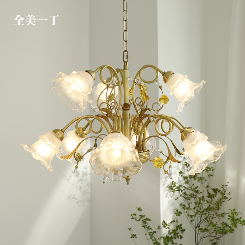 全美一丁浪漫中古黄铜水晶枝形吊灯法式花朵客厅卧室餐厅蜡烛灯具