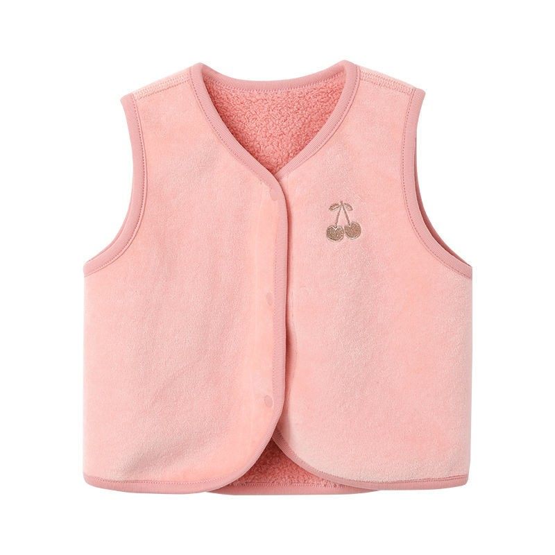婴儿加绒小樱桃刺绣马甲春秋冬款男女宝宝新生儿羊羔绒保暖背心