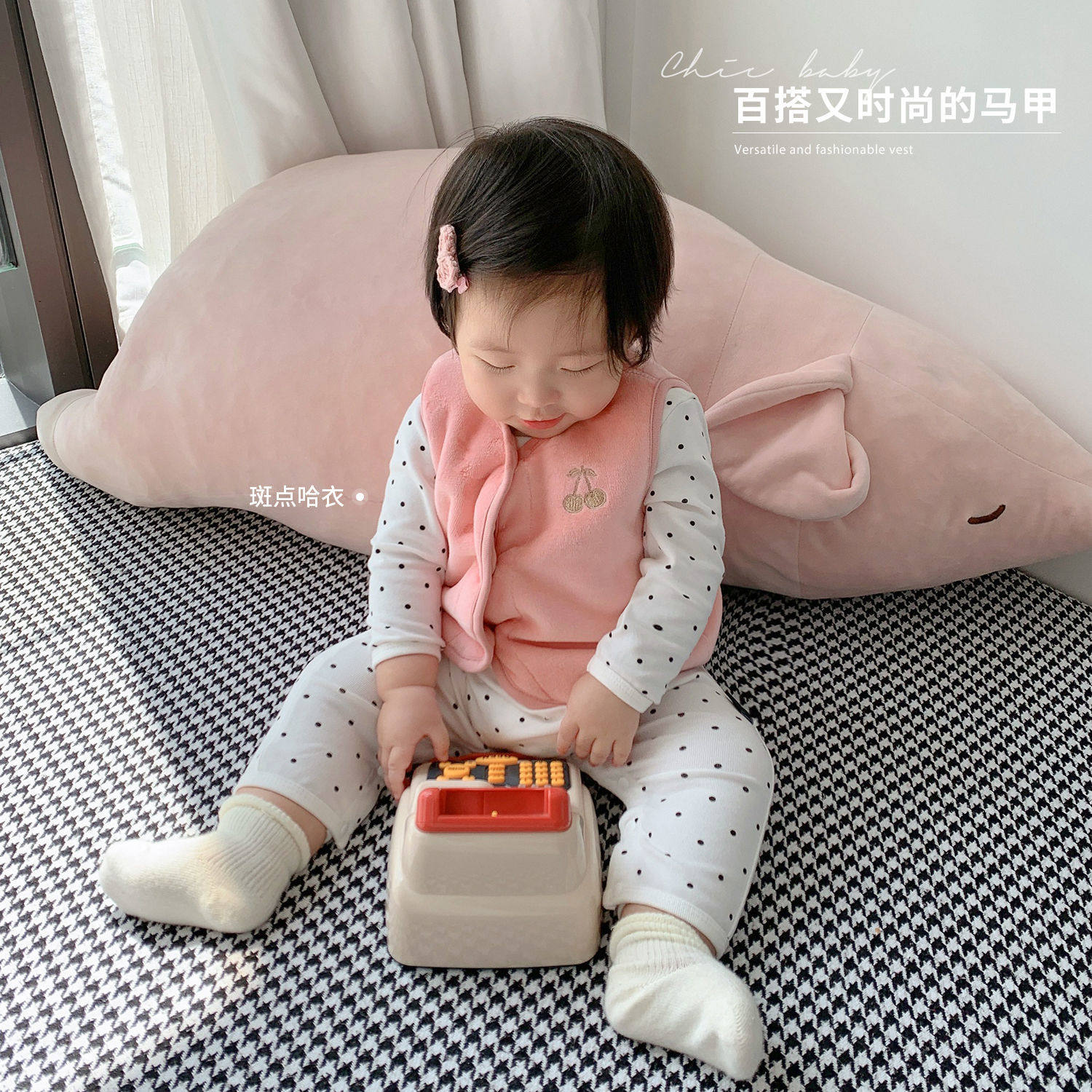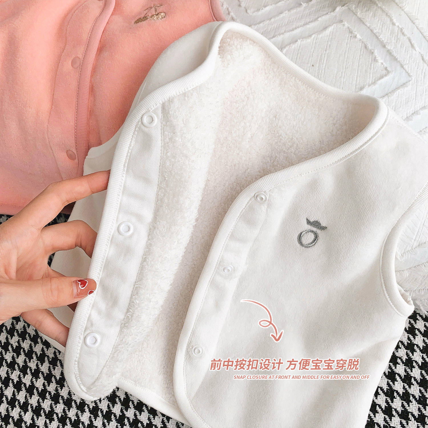 婴儿加绒小樱桃刺绣马甲春秋款