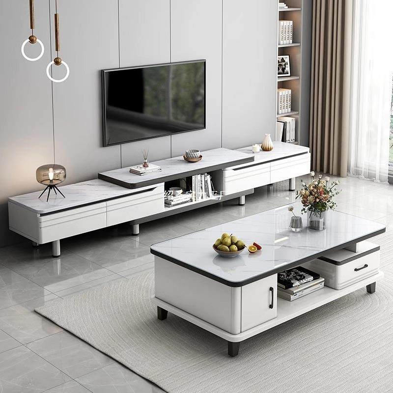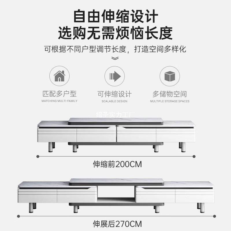 落地电茶视柜JKD客轻厅家用小户型落地伸缩奢感几电视可机柜组合