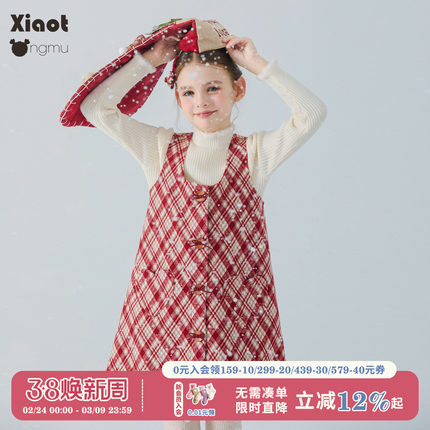 小童木 学院红格女童连衣裙冬季新款节日氛围感中大童毛呢背心裙